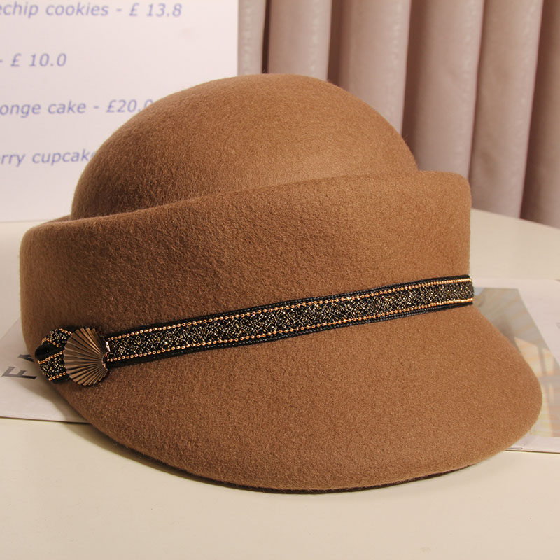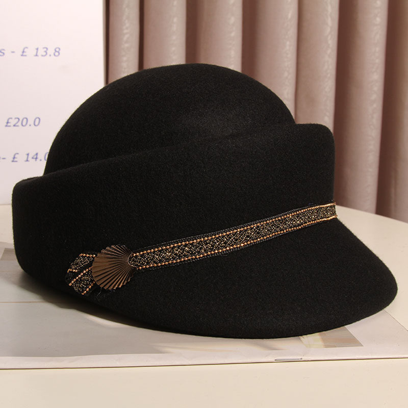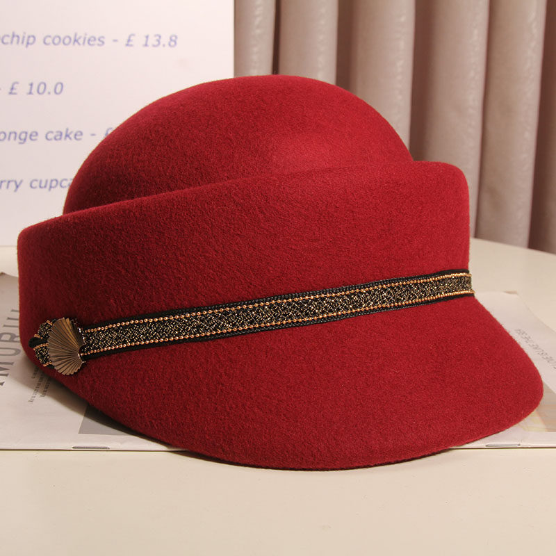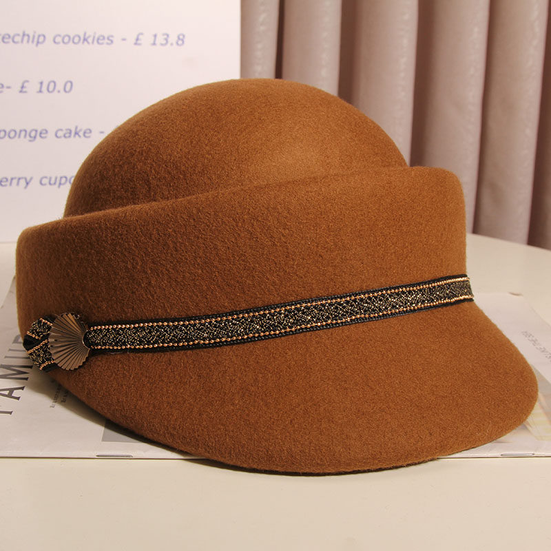 秋冬羊毛呢马术帽女潮英伦复古小沿骑士帽时尚洋气鸭舌帽羊毛礼帽