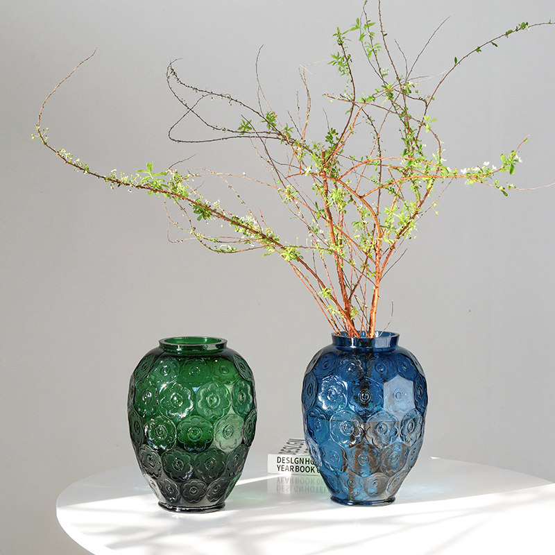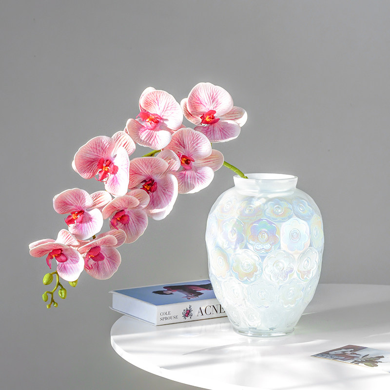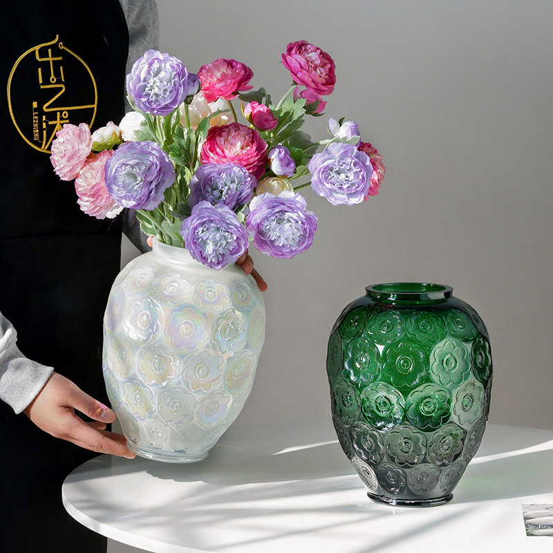 百合法式浮雕艺术水晶玻璃客厅插花摆件装饰欧式高级感银莲花瓶