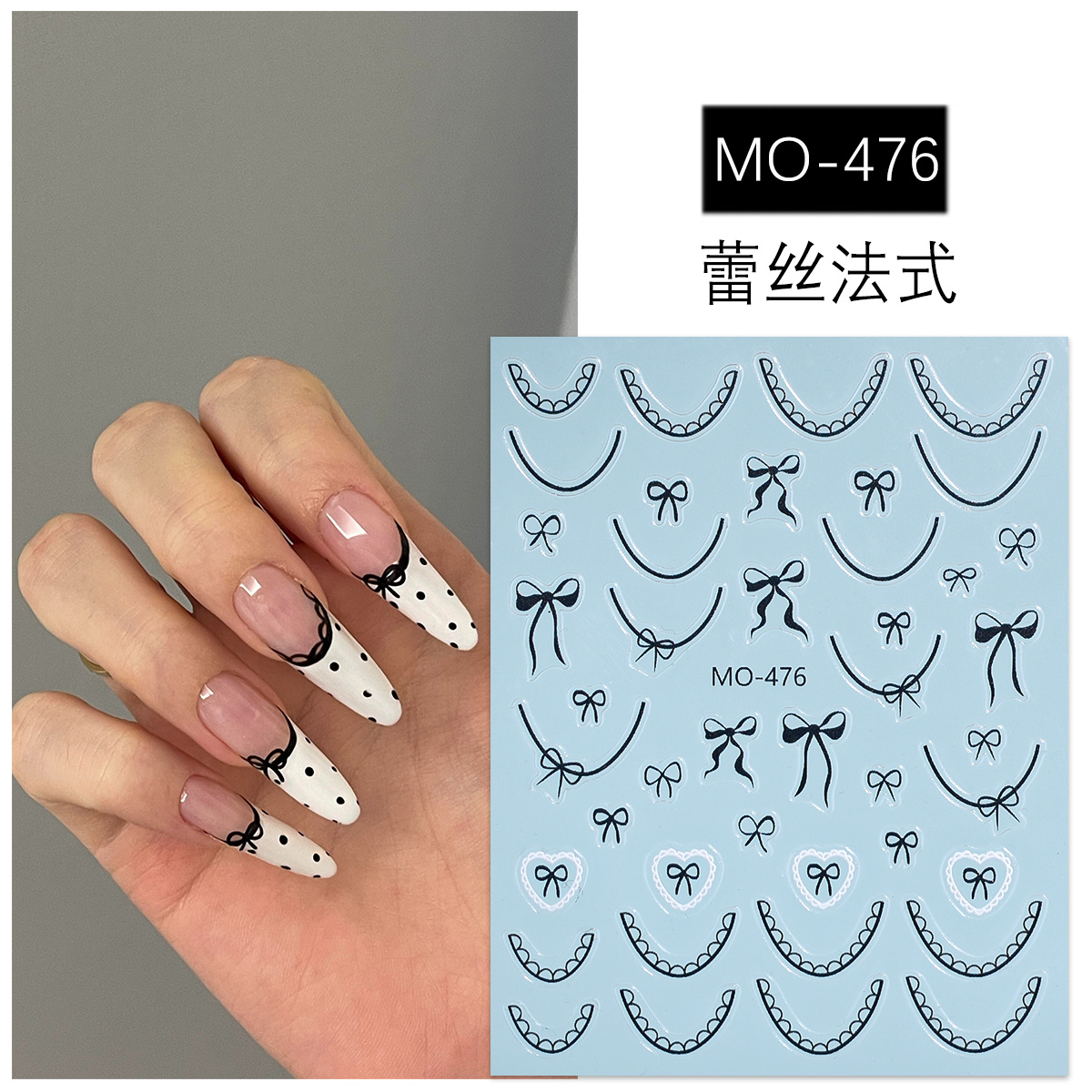 蕾丝边法式美甲贴纸2025新款芭蕾风黑白红色蝴蝶结指甲贴网红爆款