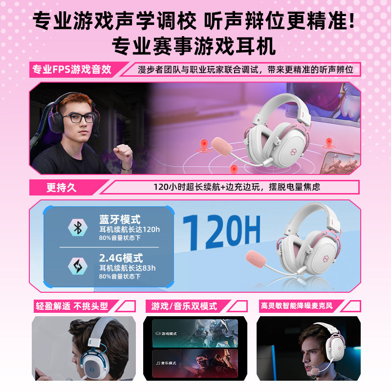 漫步者G5无线版粉色电竞耳机
