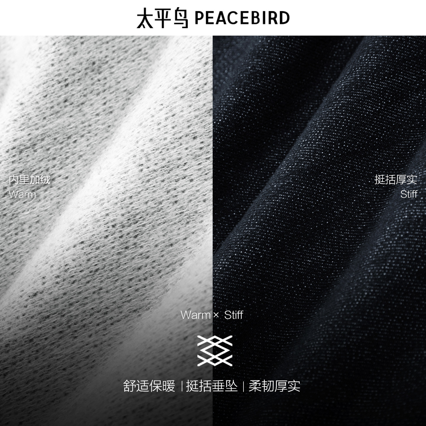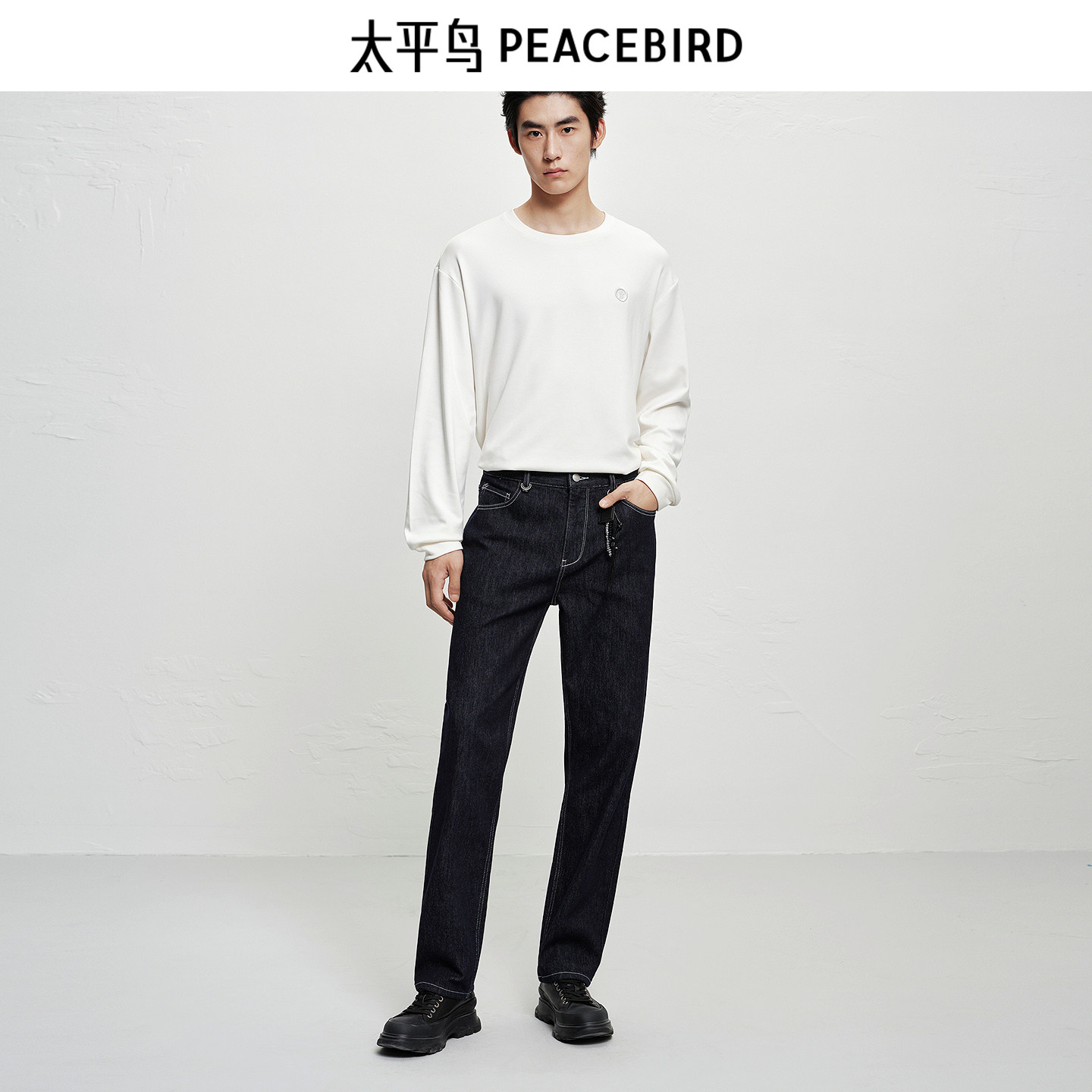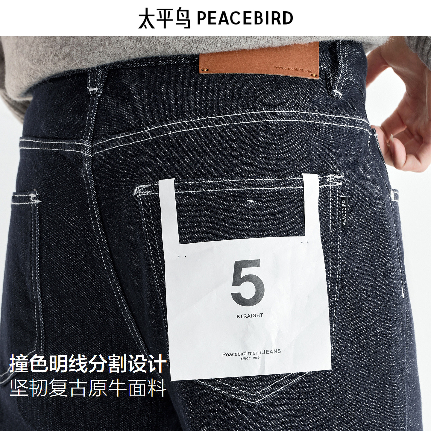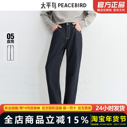 太平鸟男装内里加绒牛仔裤25冬莱赛尔复古原牛明线直筒BAHAF411U