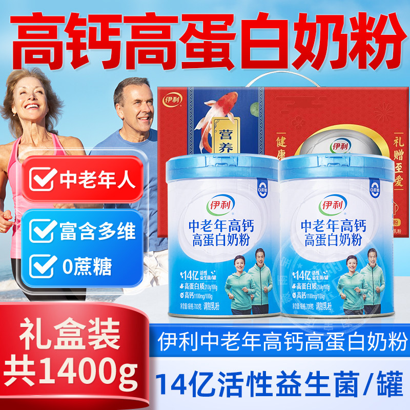 伊利中老年高钙高蛋白成人奶粉700g乳清粉含钙铁锌VADEC益生菌