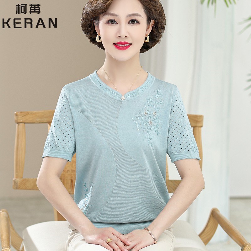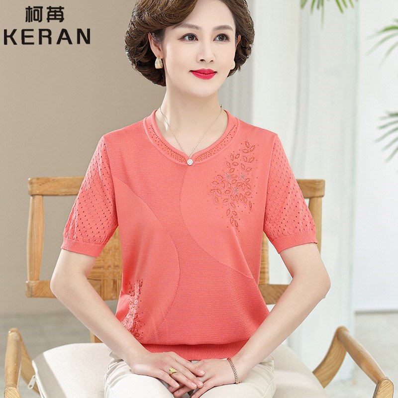 妈妈夏装新款短袖薄款上衣中年女装洋气打底小衫中老年夏季T恤衫