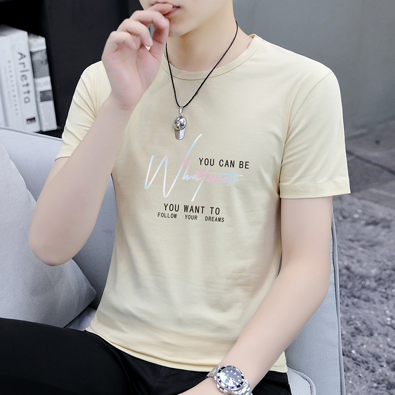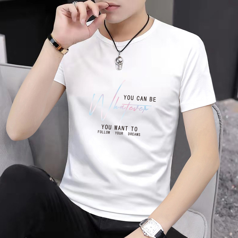 夏装男士圆领短袖T恤透气薄款休闲汗衫纯棉高档潮流体恤印花上衣