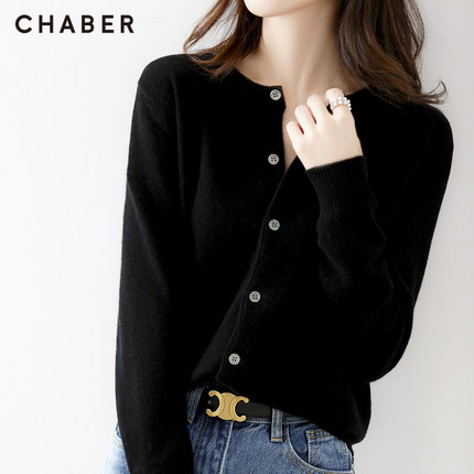通勤风黑色针织开衫女2025新款纽扣圆领百搭毛衣外套