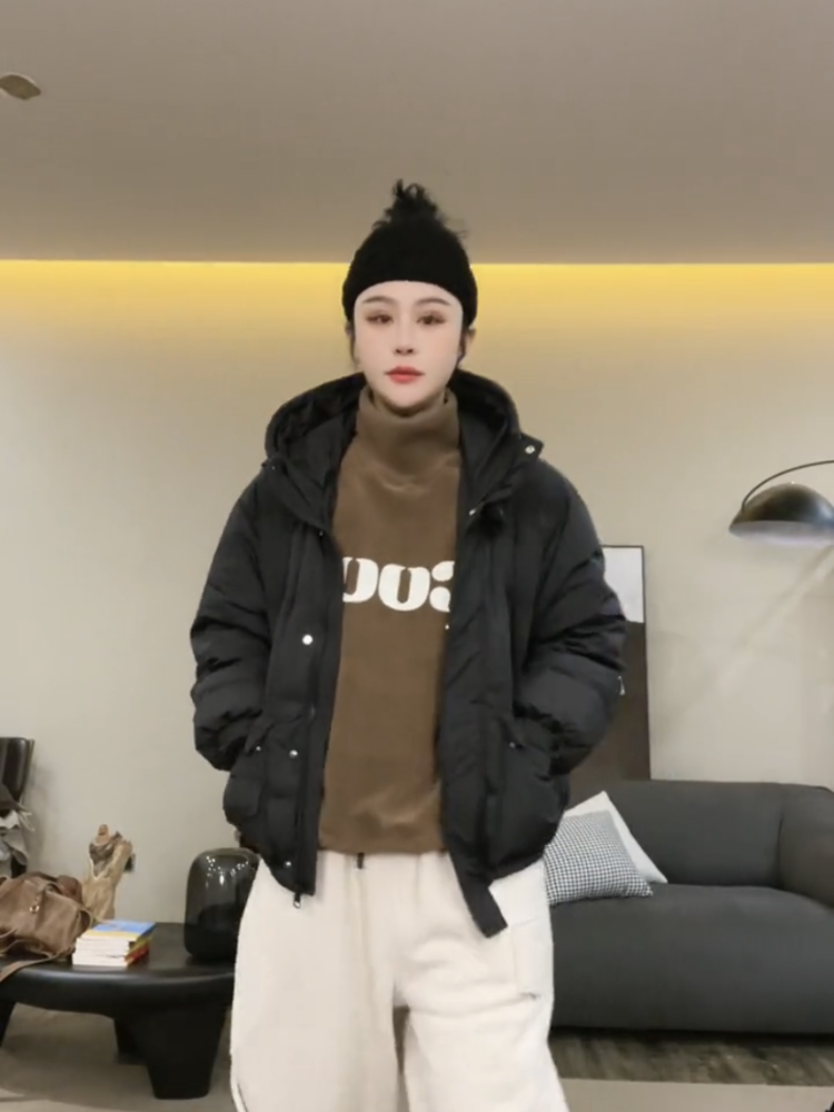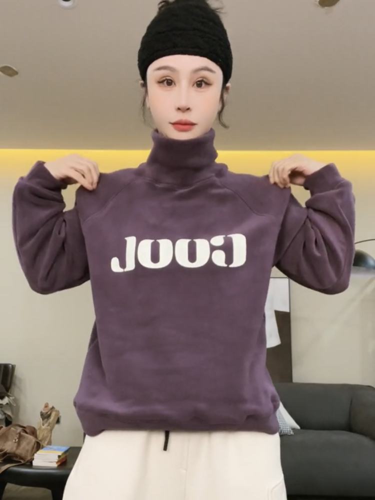 冬奥粒绒字母高领卫衣加绒加厚宽松套头衫休闲打底衫内搭上衣女