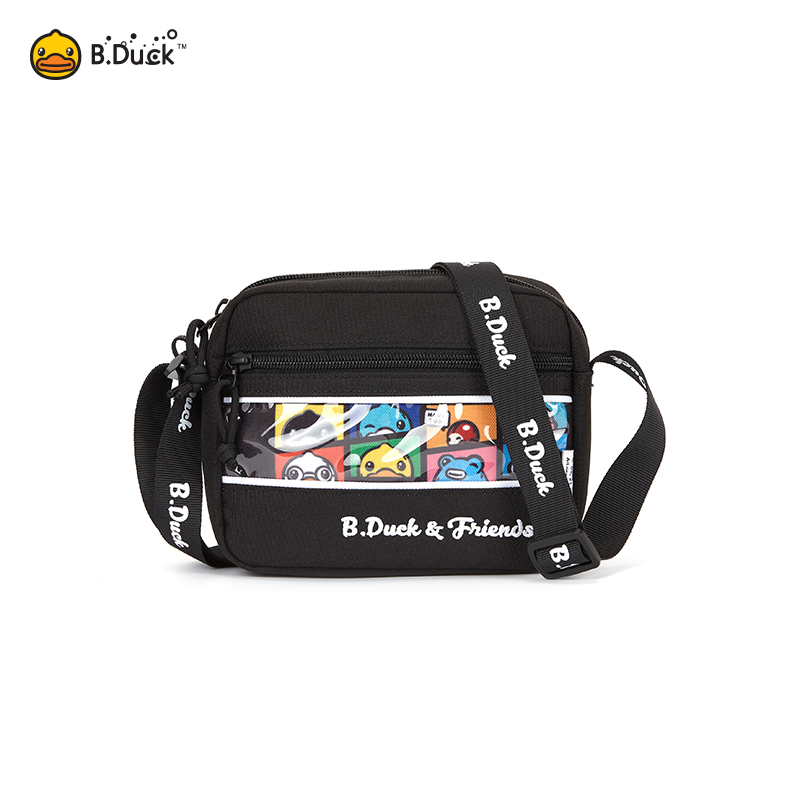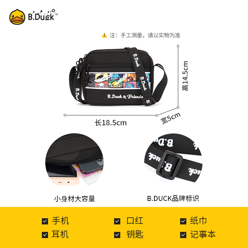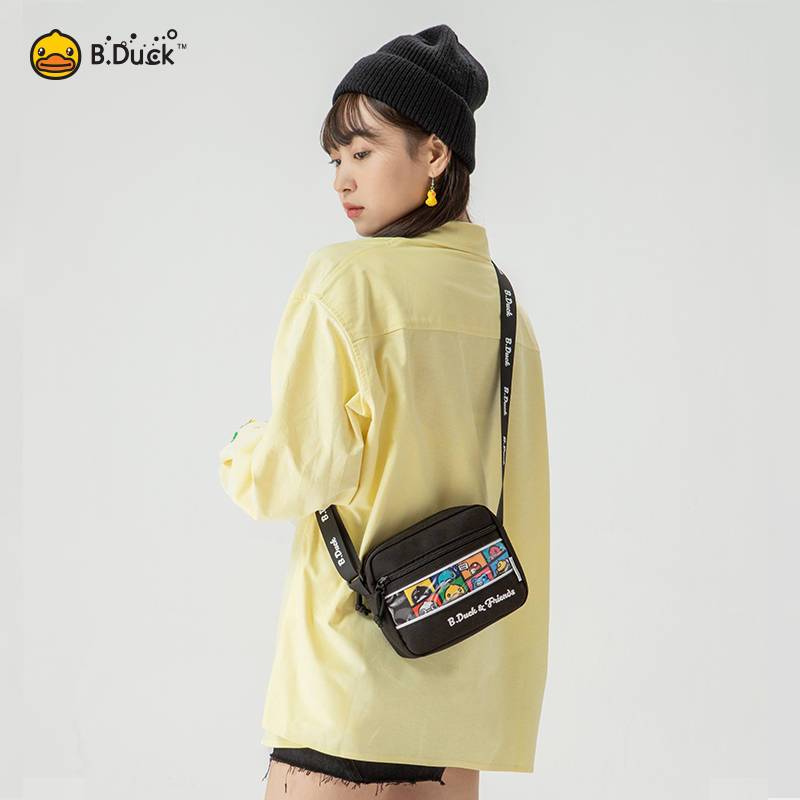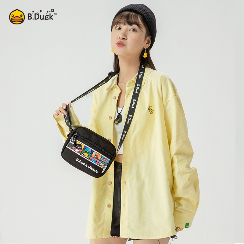 B.Duck女斜挎包初中生潮流休闲单肩包男小黄鸭迷你印花时尚小方包