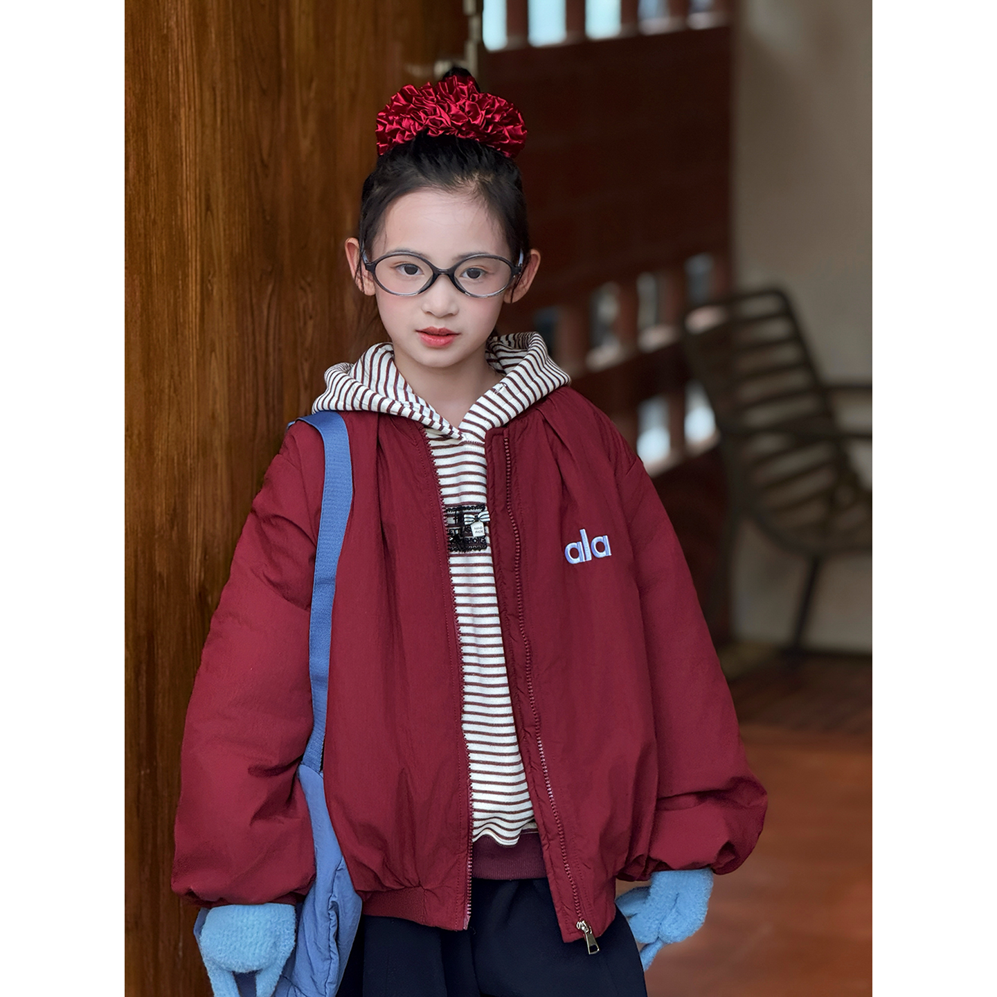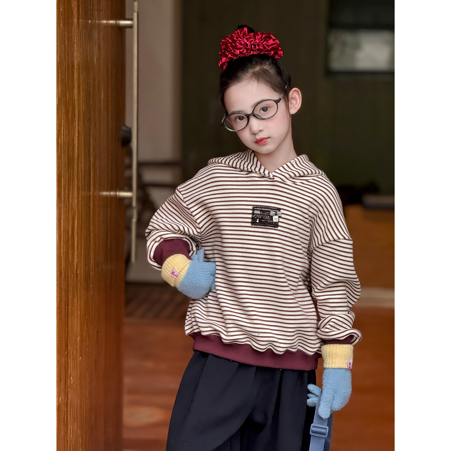 女童套装2025冬季新款儿童加厚保暖外套加绒条纹卫衣洋气两件套潮