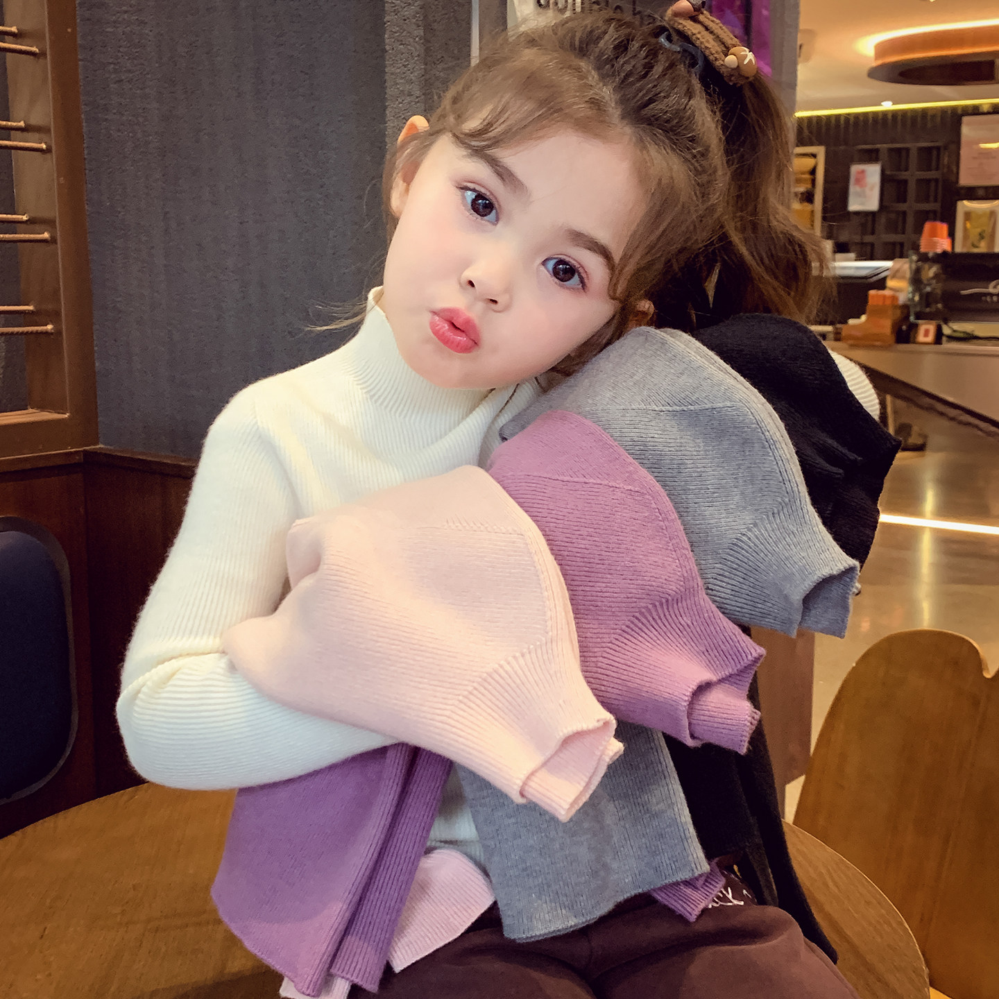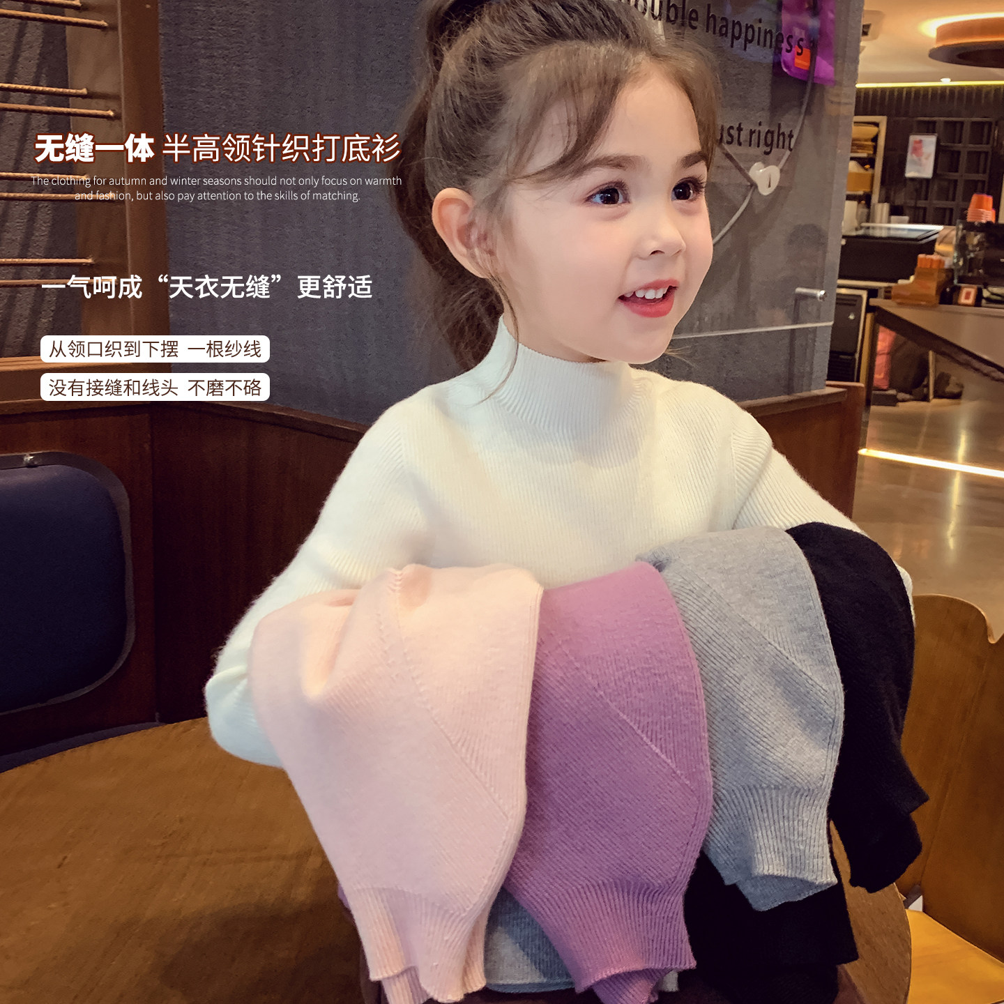 女童毛衣冬装2025新款洋气儿童半高领针织衫小女孩纯色内搭打底衫