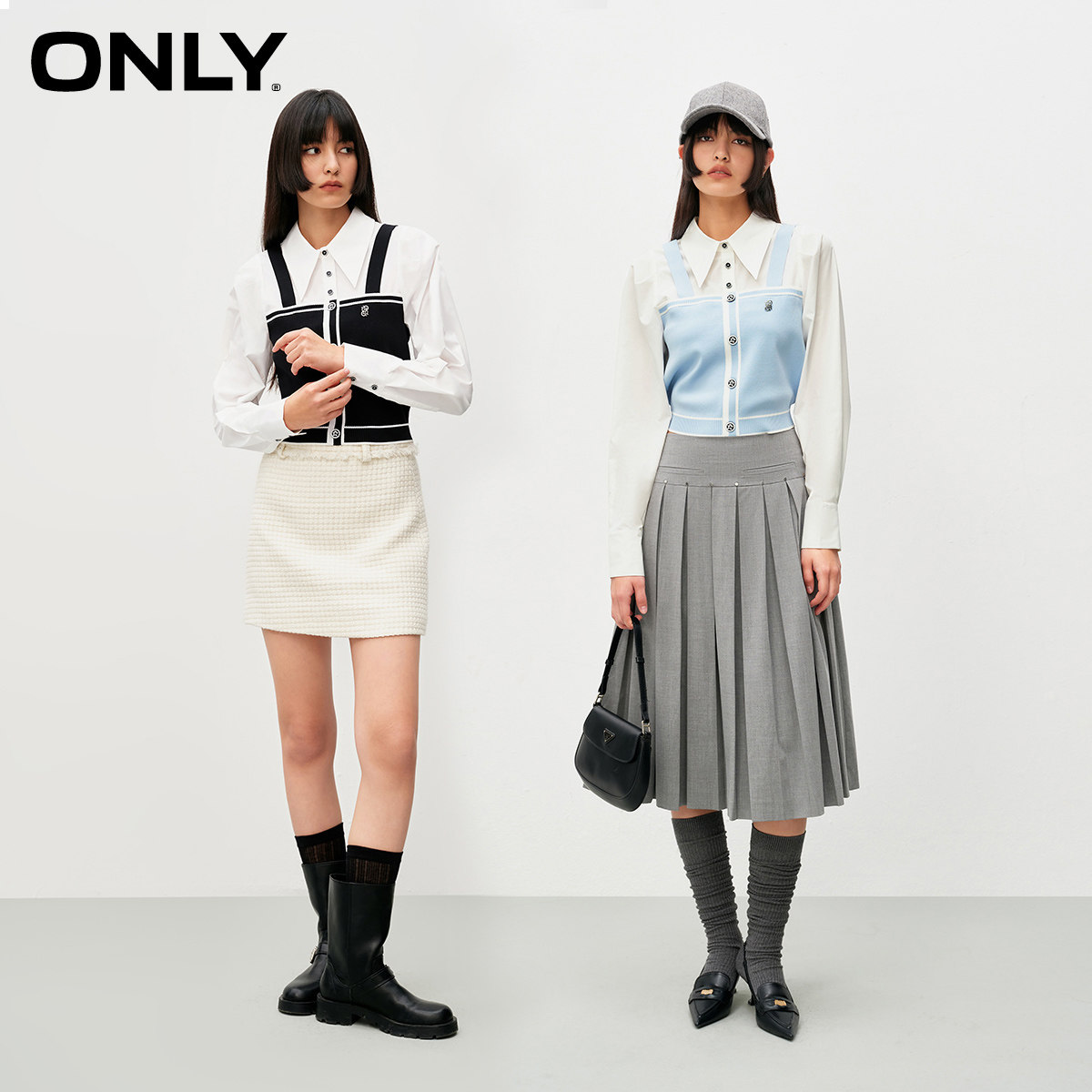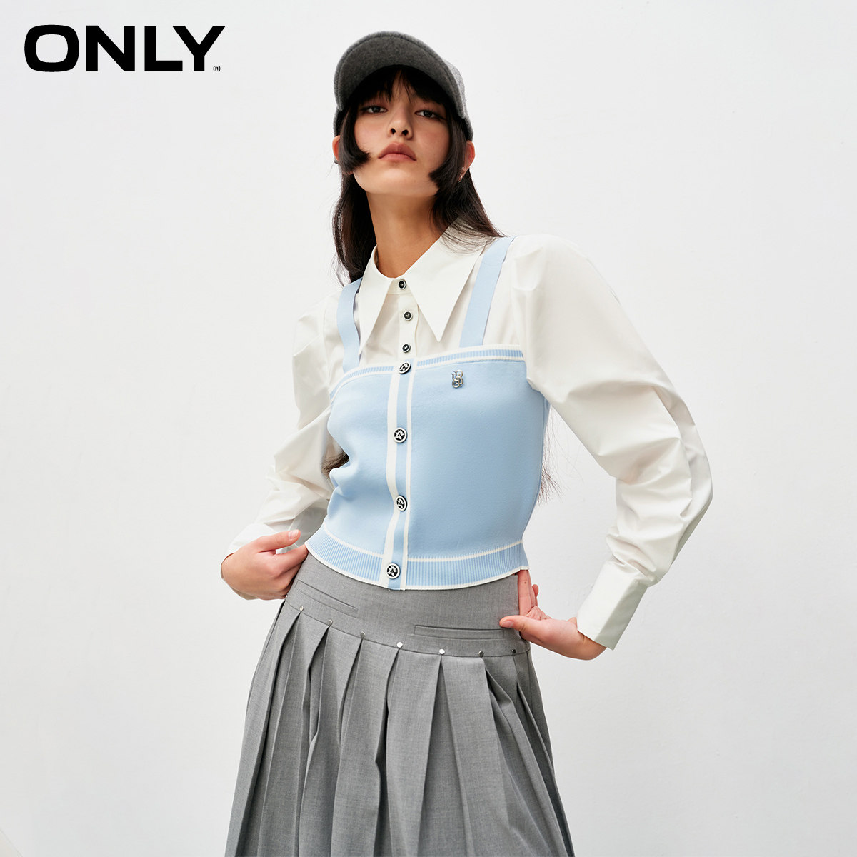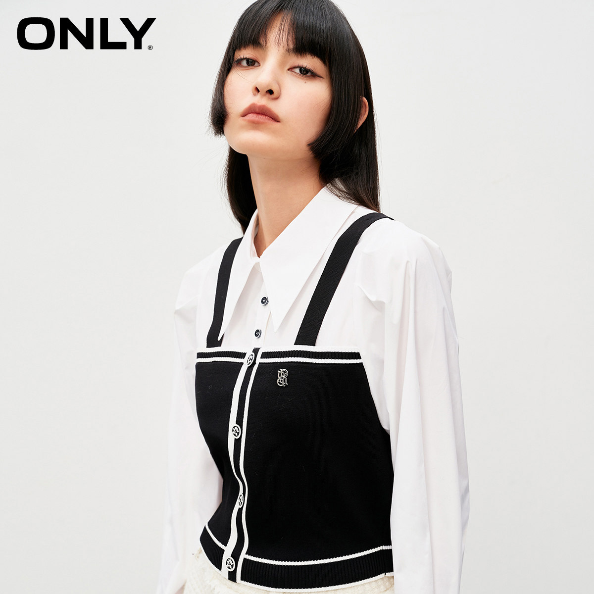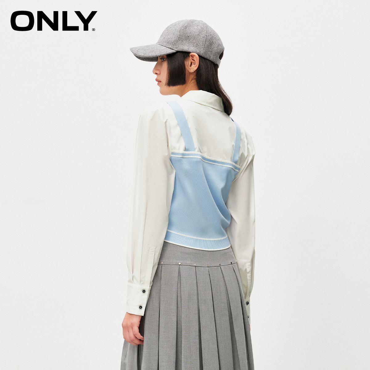 【ONLY奥莱】秋冬时尚通勤假两件泡泡袖短款雪纺衫女