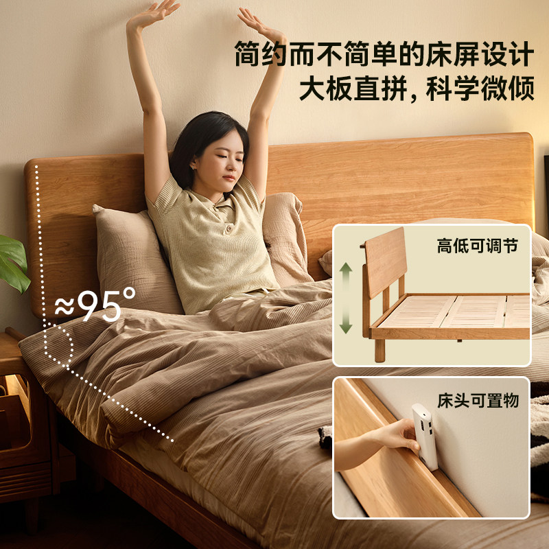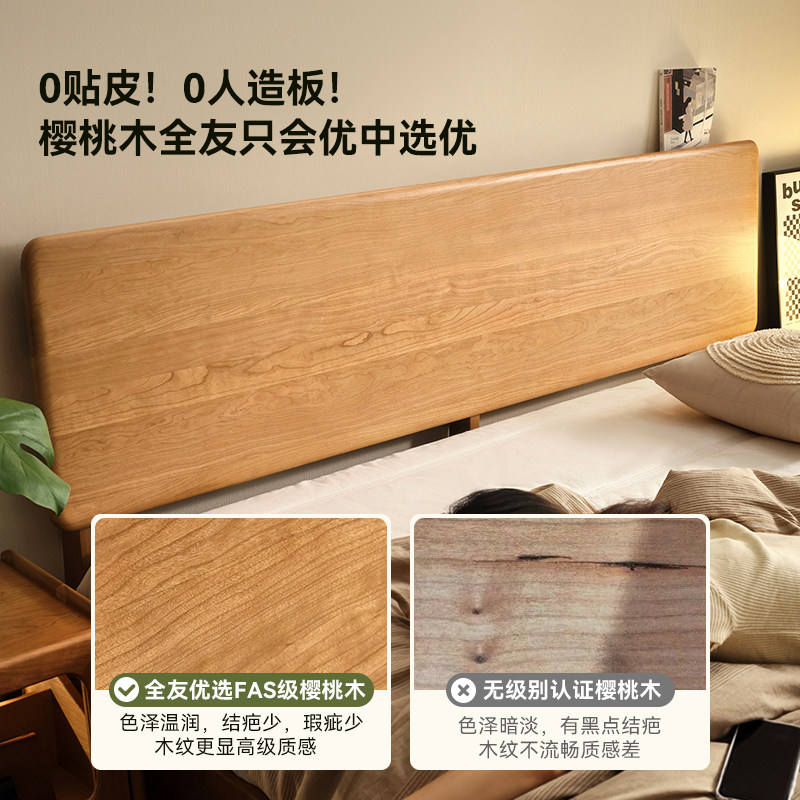 全友家居北欧风小户型实木单人床1米5主卧室家具樱桃木1米8双人床