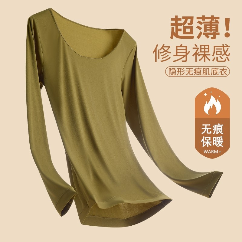 裸感无痕紧身秋衣秋裤套装长袖打底衫女圆领百搭纯色大码保暖