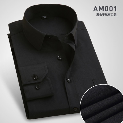 黑色衬衫男长袖商务修身正装衬衣加肥加大码纯色新郎结婚伴郎礼服