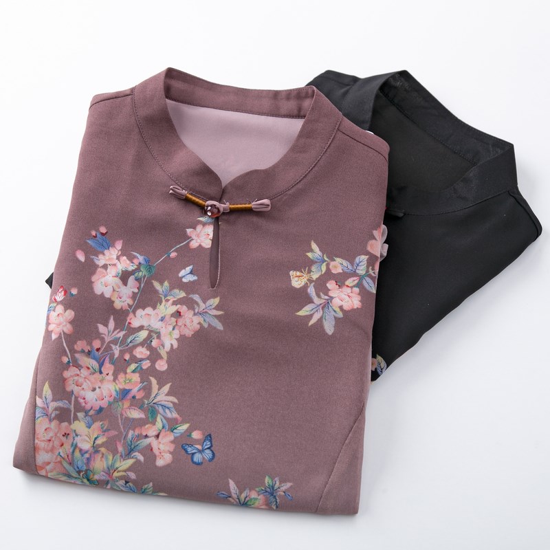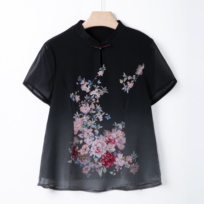 妈妈装2024夏装新款女中老年人雪纺上衣奶奶夏季短袖套装老人衣服