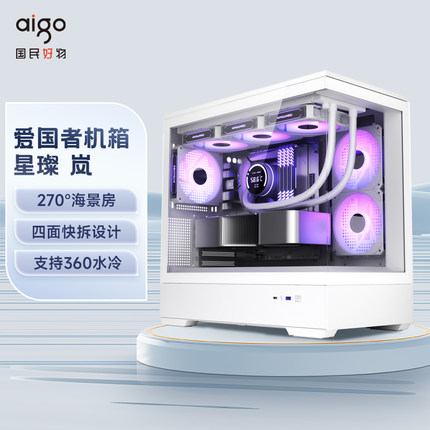 爱国者星璨岚 海景房机箱电脑台式机鱼缸全侧透无立柱M-ATX机箱