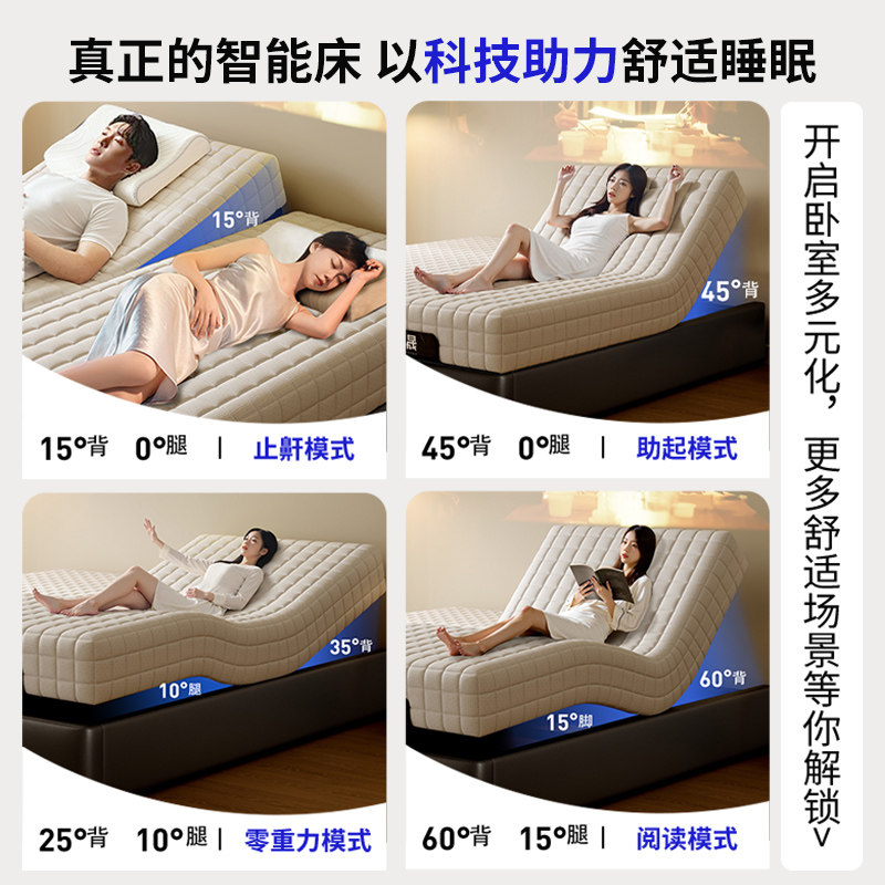 无床头智能电动床主卧全自动家用升降床架现代简约储物1米8双人床