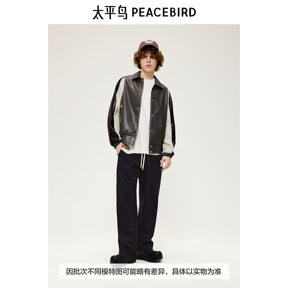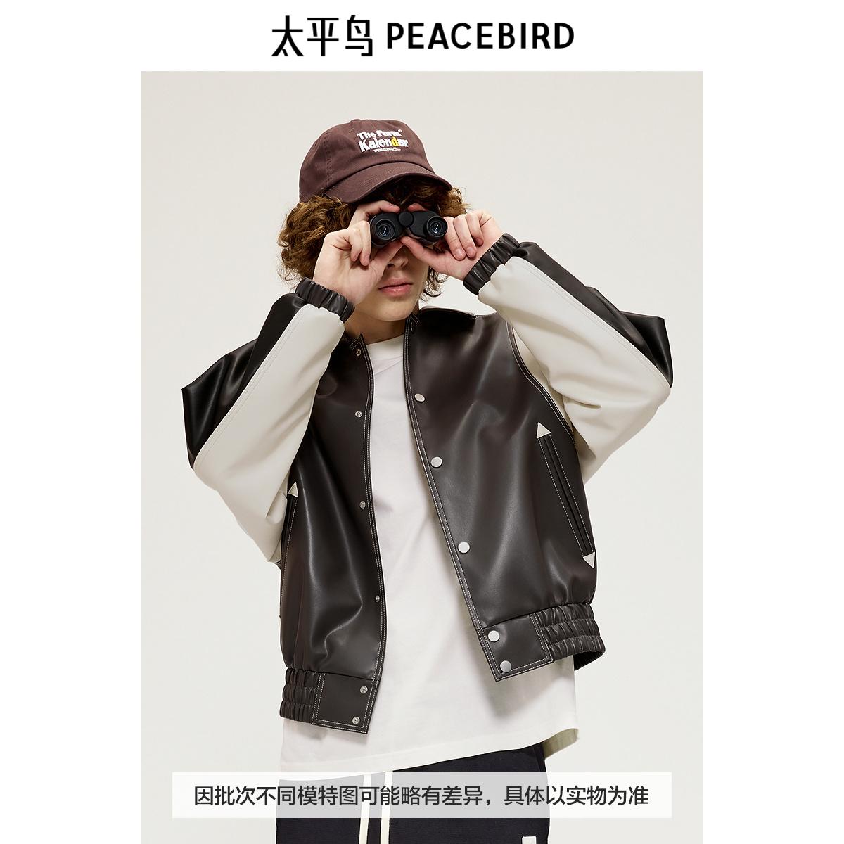 【商场同款】太平鸟男装夹克秋季新款拼色阔版pu皮外套 B2BCE3260