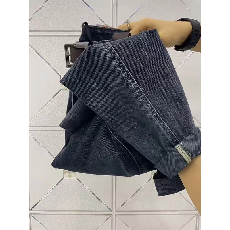 灰蓝色哈伦牛仔裤男款春秋季宽松直筒裤子复古水洗修身小脚九分裤