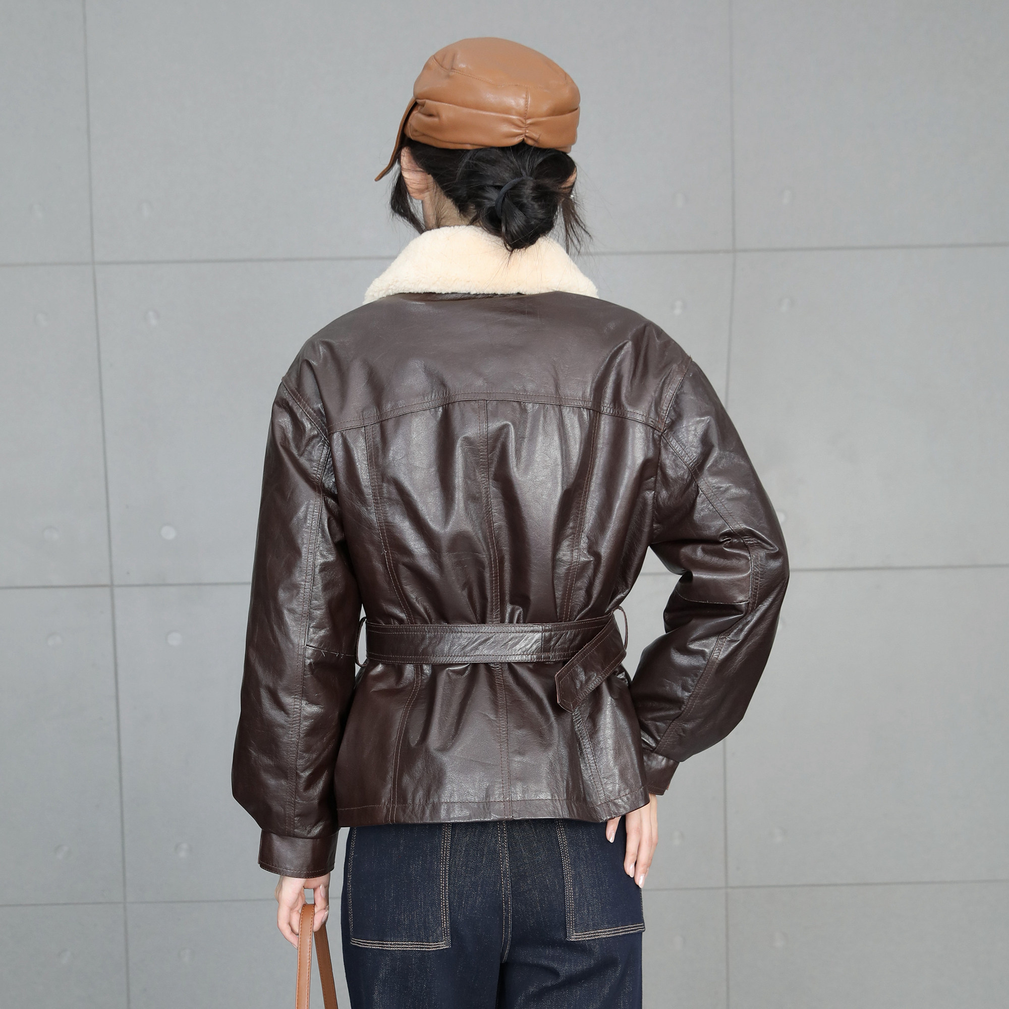 鹅绒皮衣女短款修身外套