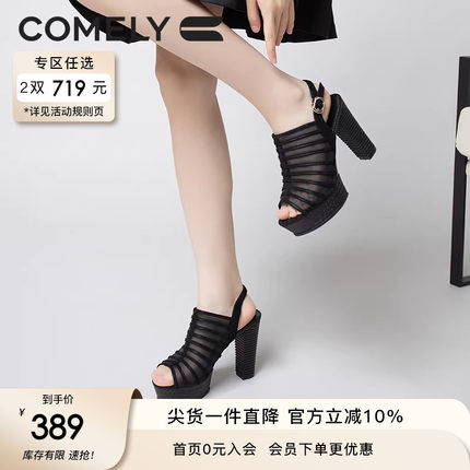 康莉高跟凉鞋女夏季商场新款时尚镂空防水台粗跟鱼嘴凉鞋罗马凉鞋