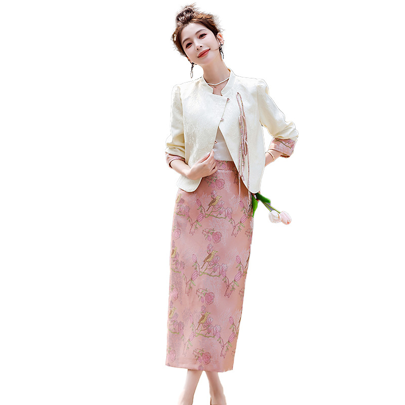 新中式优雅气质提花套装女2025秋季复古国风盘扣上衣半身裙两件套