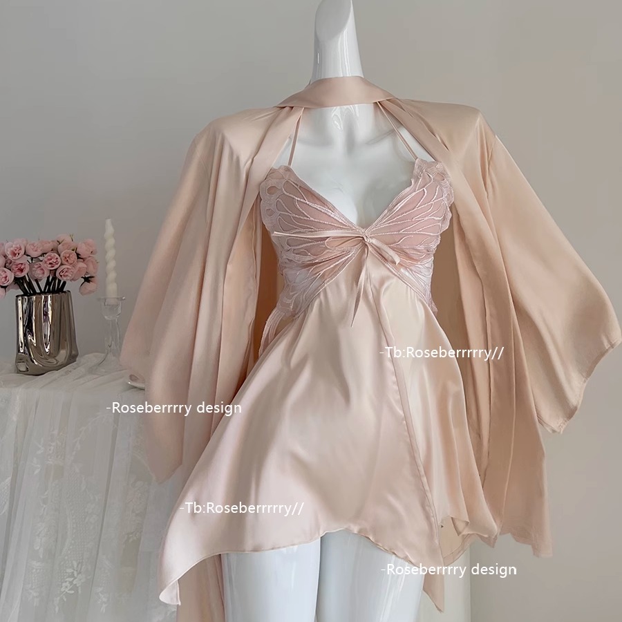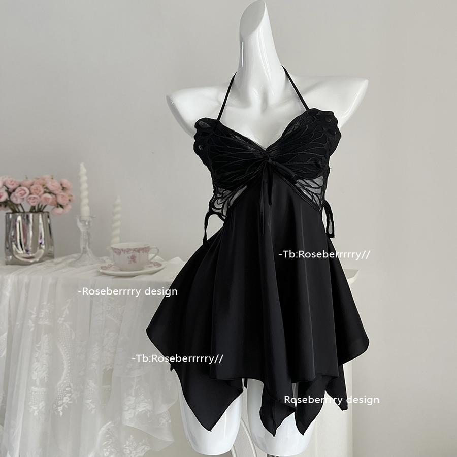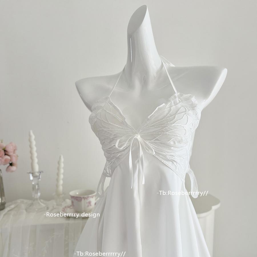 Roseberrrry寻找蝴蝶 蝴蝶刺绣缎面纯欲挂脖裙带胸垫辣妹性感睡裙