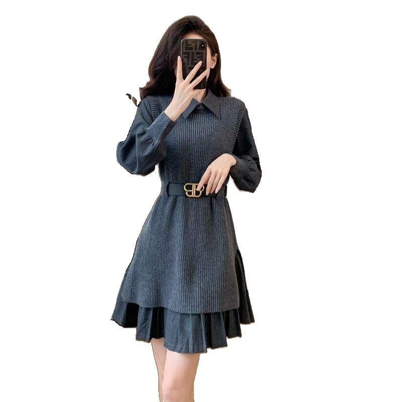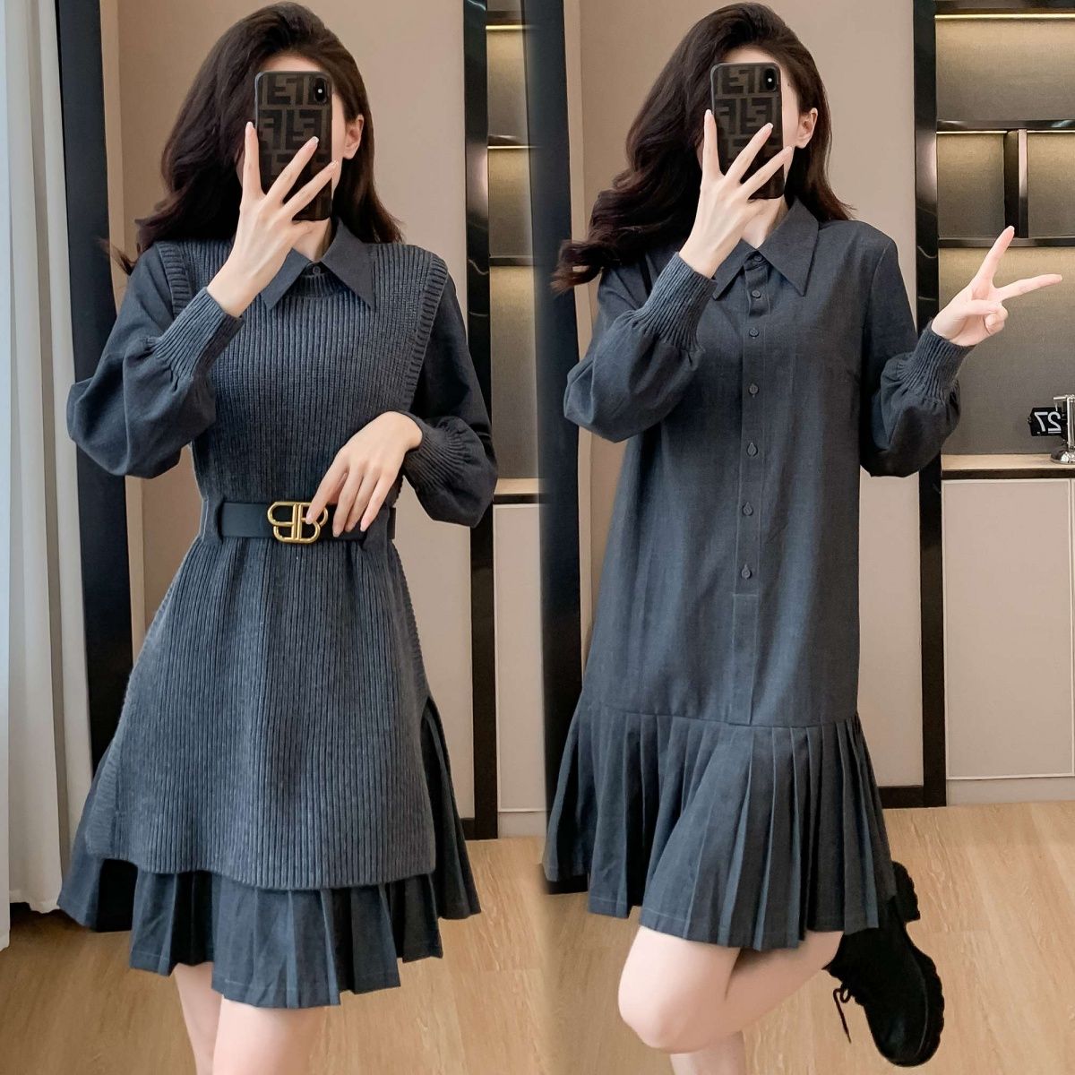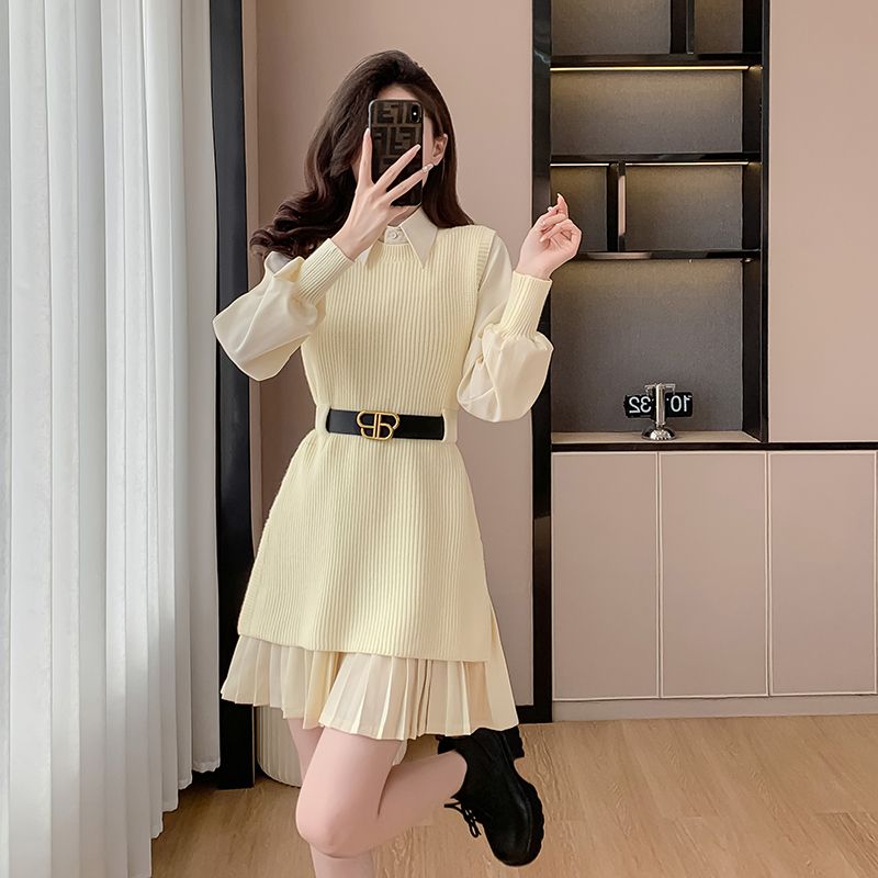 法式新款赫本风打底针织背心百褶裙两件女装收腰气质冬款2025