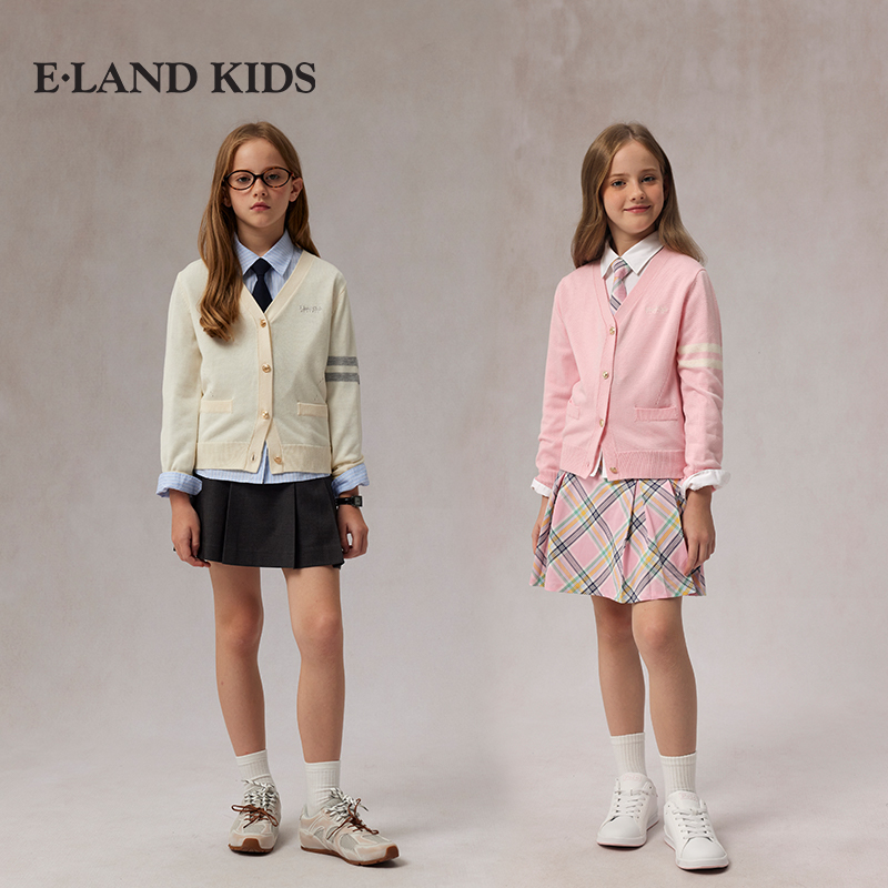 eland kids衣恋童装女童针织开衫25年春秋学院风刺绣含绵羊毛毛衣