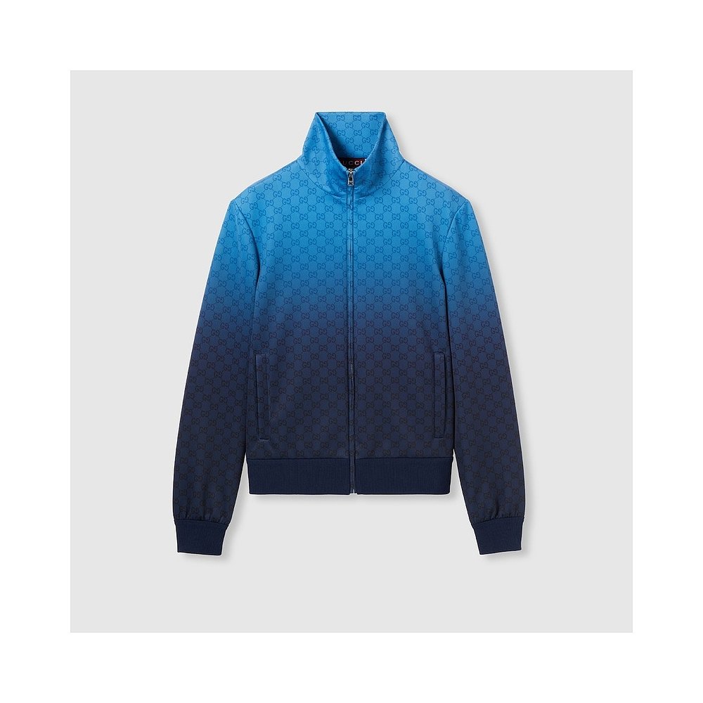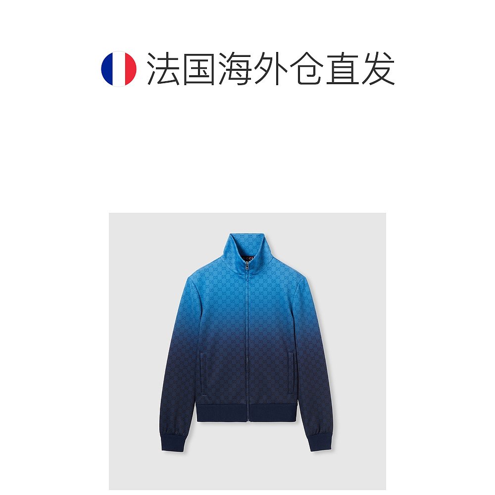 自营欧洲直邮Gucci/古驰 男士浅蓝色/深蓝色氯丁橡胶双G印花立领