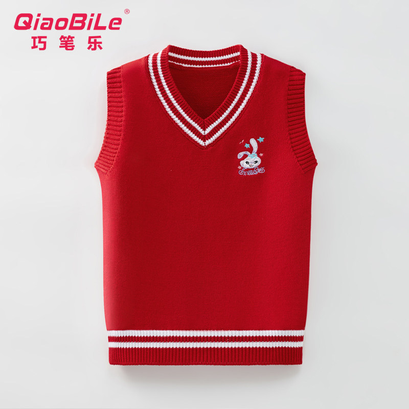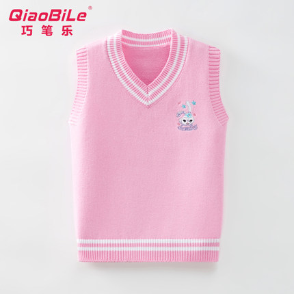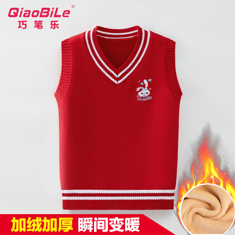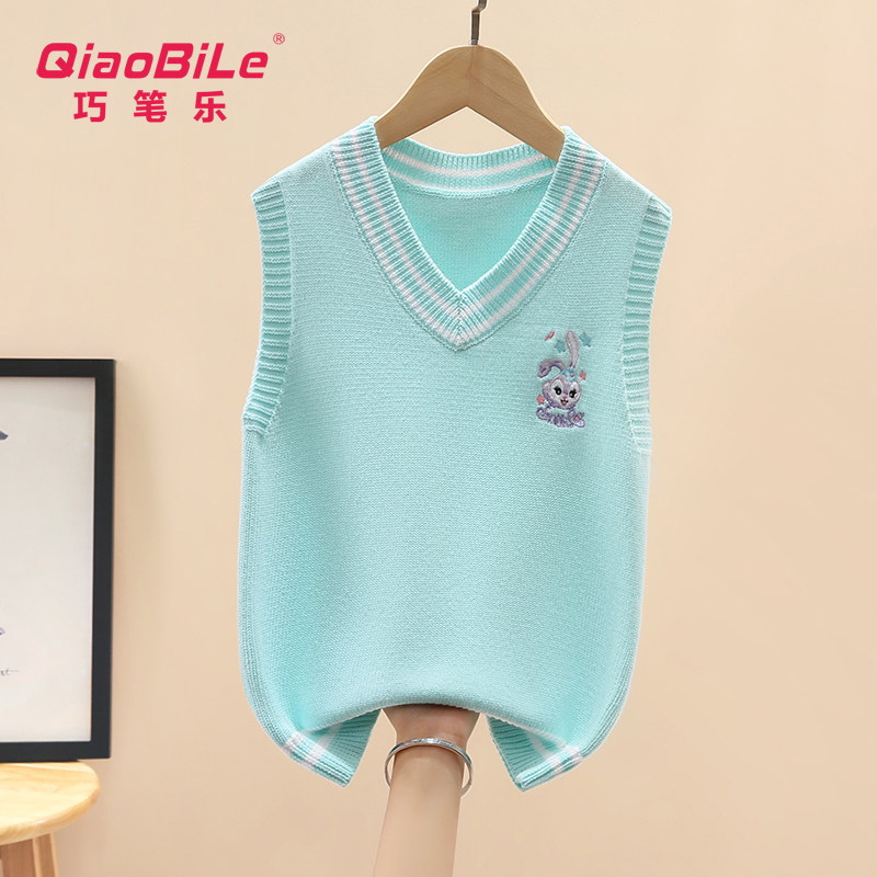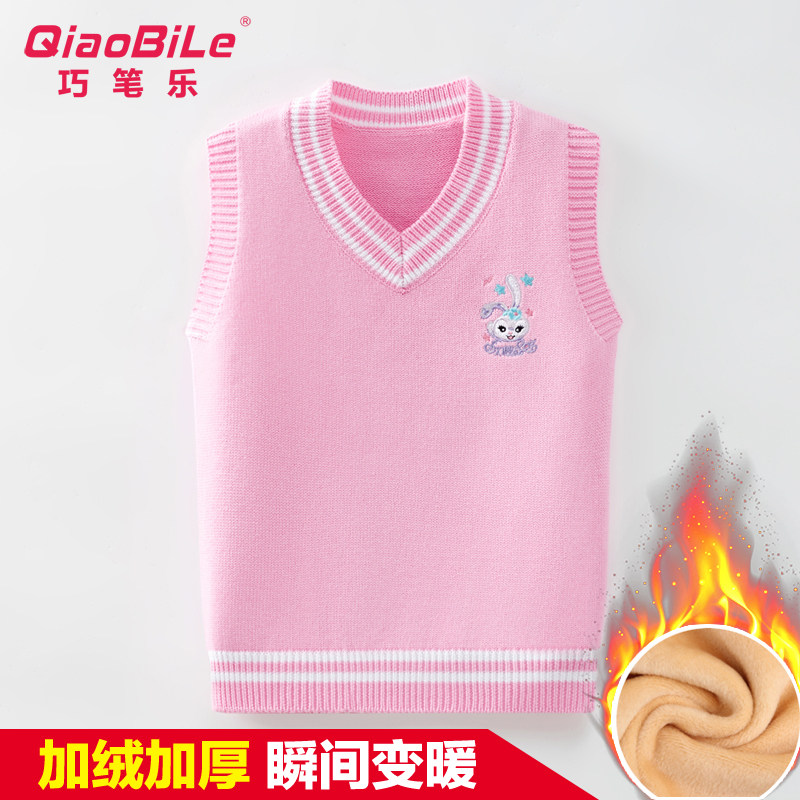 春秋中大童薄全棉背心2025新款女童加绒厚马甲洋气V领针织棉上衣