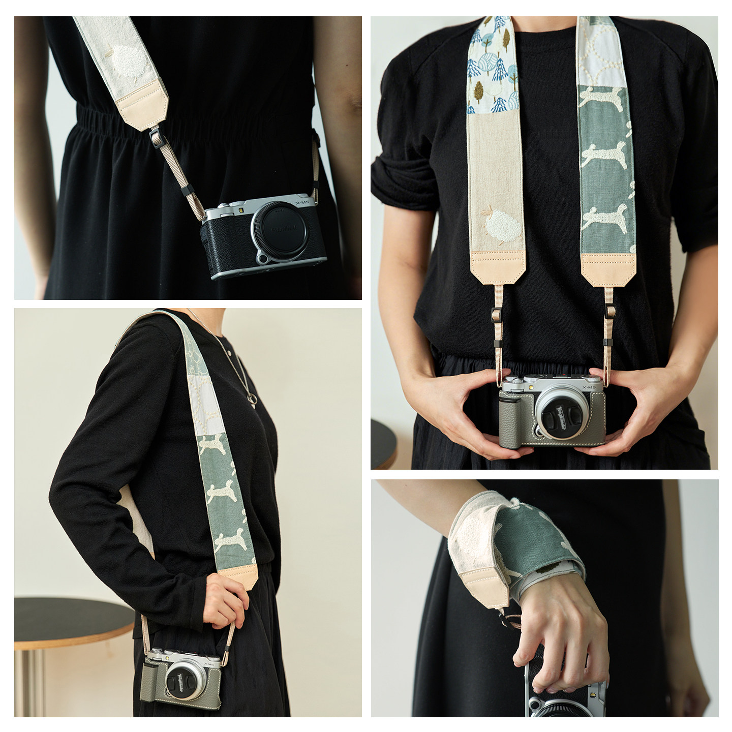 阿尔飞斯皆明川风格相机肩带微单反斜挎挂脖单肩腕带适用富士佳能拍立得尼康配件刺绣编织文艺风挂绳减压背带
