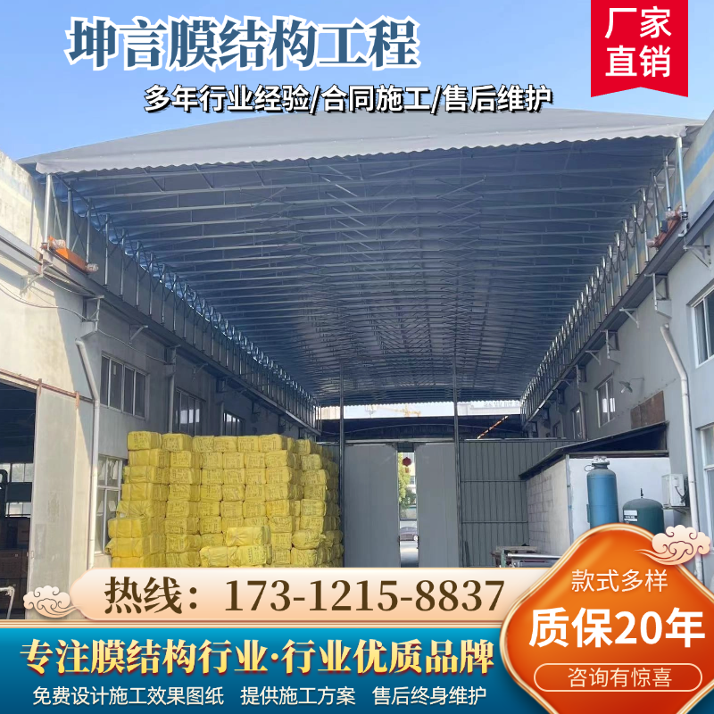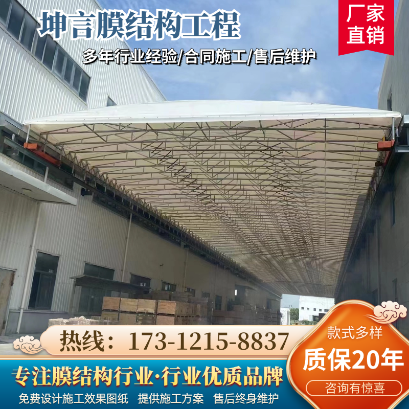 南京过道空间电动伸缩遮阳雨棚工厂卸货区大型仓库屋顶活动遮阳蓬