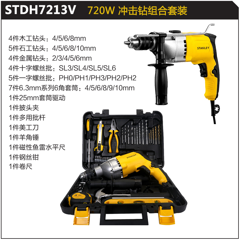 史丹利电动工具冲击钻多功能电钻 家用工具箱套装手电钻电锤两用