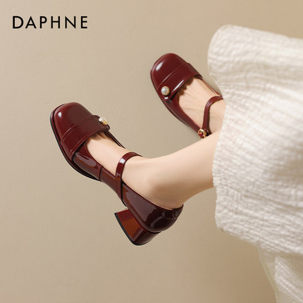 达芙妮红色单鞋女2025新款秋季法式玛丽珍鞋女鞋子中跟小皮鞋婚鞋