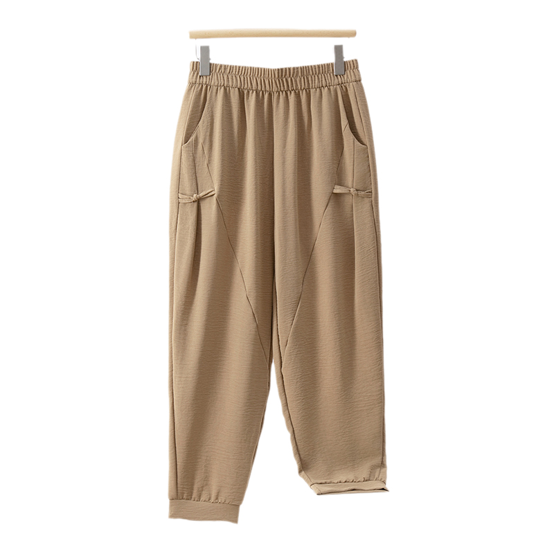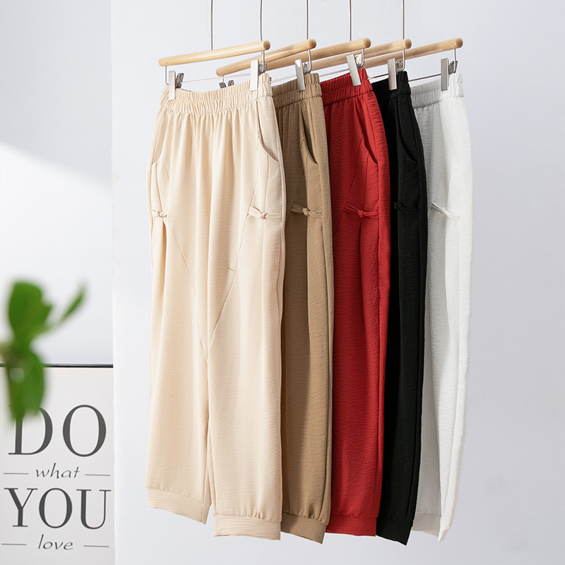 中老年女裤棉麻哈伦裤宽松妈妈夏季松紧腰灯笼裤休闲高腰九分裤子