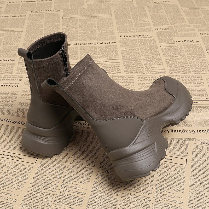 真皮巨好看厚底弹力靴女2025春秋季新款侧拉链增高瘦瘦靴马丁短靴