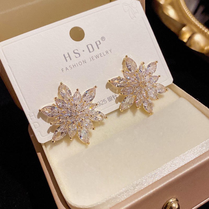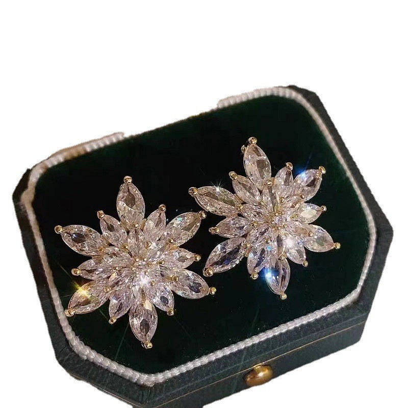 真金电镀太阳花耳钉复古轻奢小众设计感水晶锆石耳环时尚百搭耳饰
