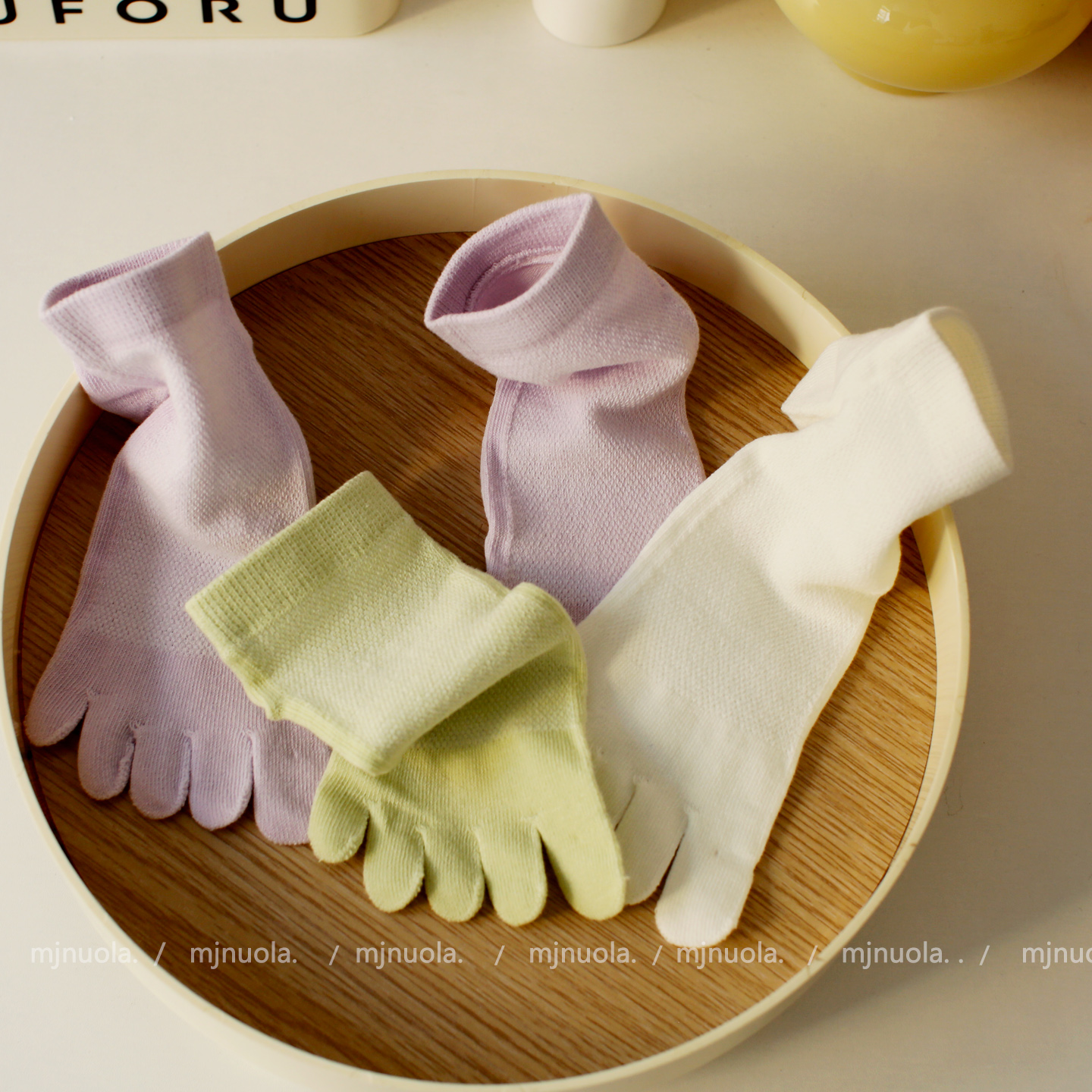 米吉诺拉 夏季薄款透气网眼不闷脚短筒袜少女纯棉五指袜分趾袜子