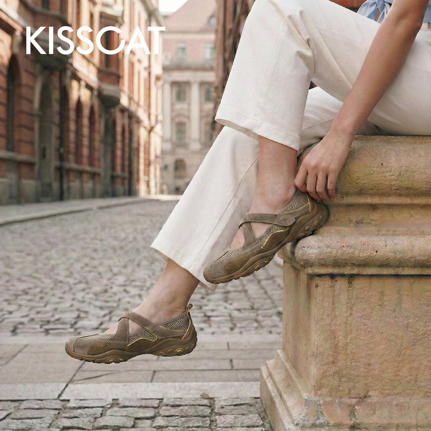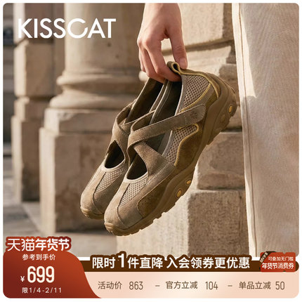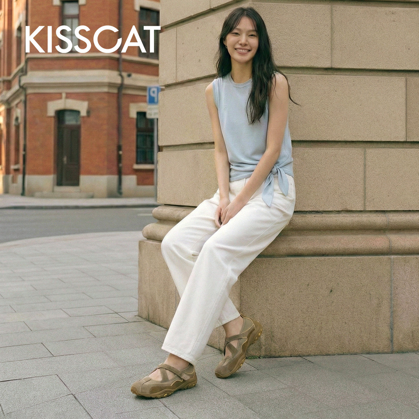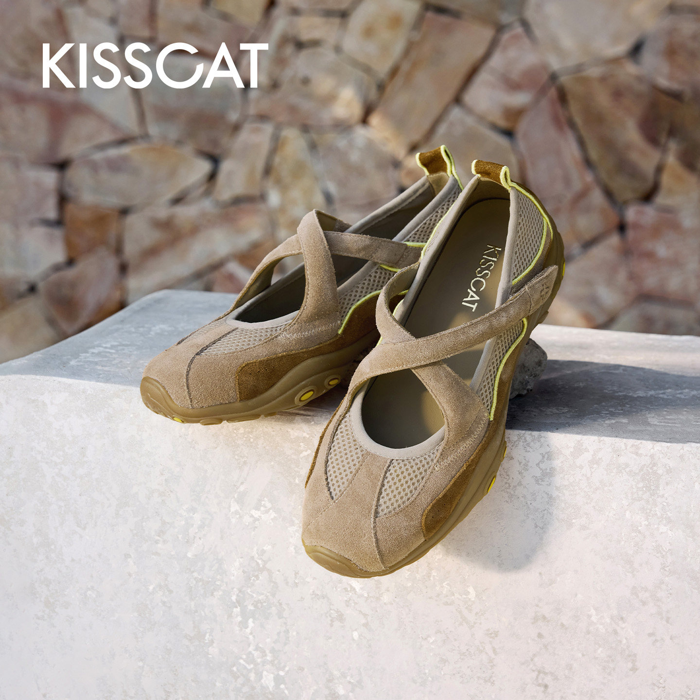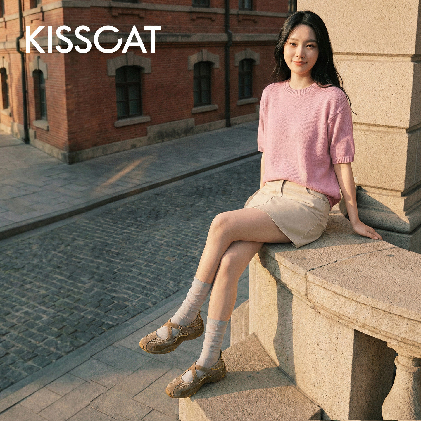 KISSCAT接吻猫[氧气漫游]运动玛丽珍26新透气舒适增高玛丽珍鞋女