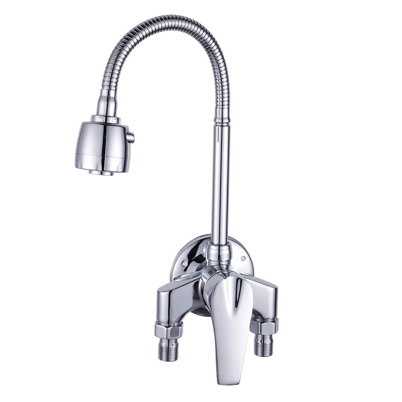 明装厨房冷热混水阀水龙头挂墙式洗衣池明管万向花洒龙头家用