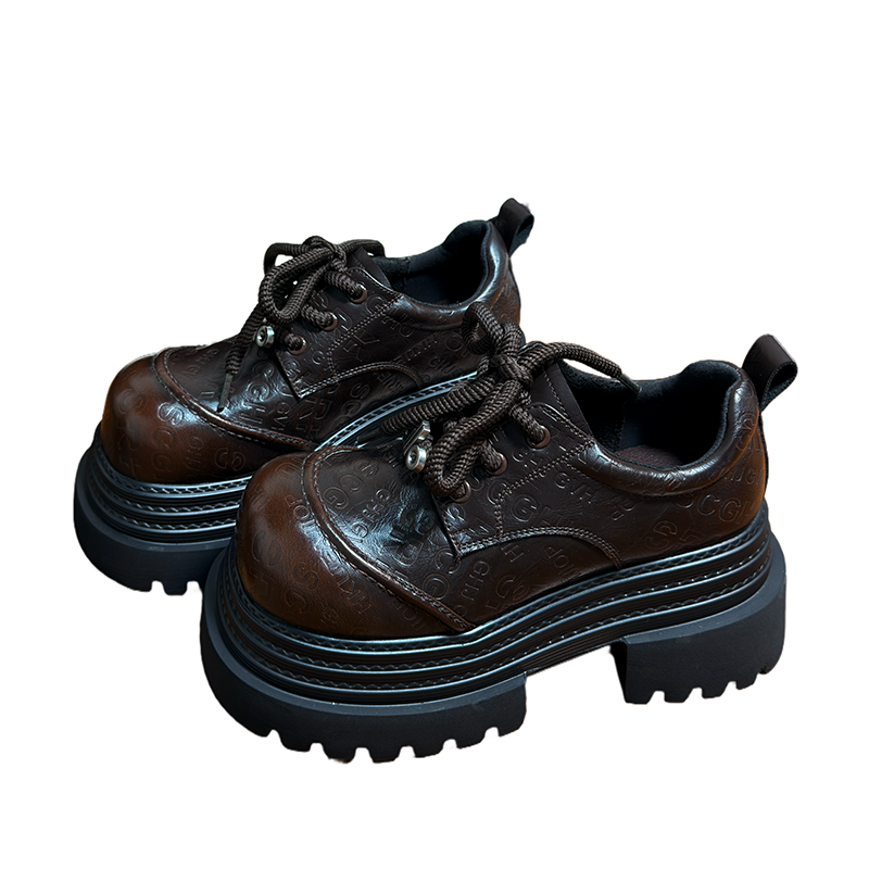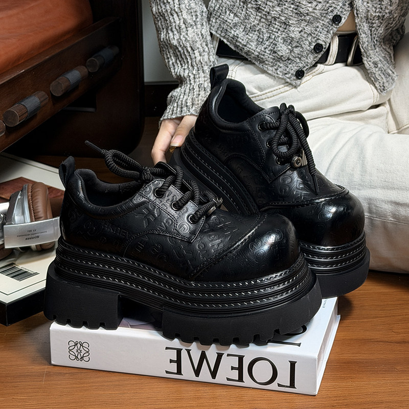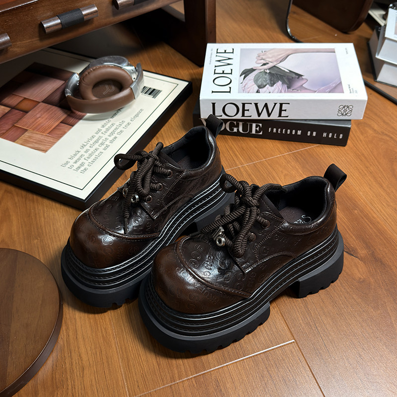 复古真皮松糕厚底小皮鞋女英伦风圆头德比鞋小个子增高乐福鞋单鞋