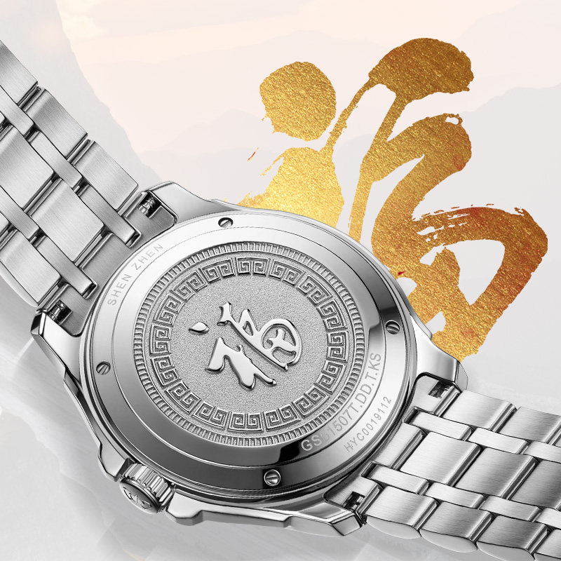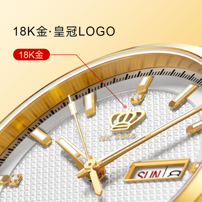 天王表男自动机械表18K金logo男表钢带手表商务腕表石英表送礼