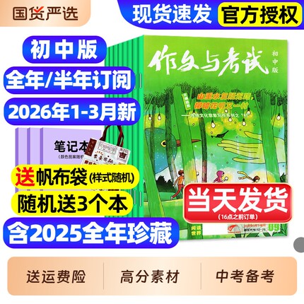 作文与考试初中版杂志2026年1/2/3月新【全年/半年订阅/2025年1-12月现货】含增刊初中生789年级作文高分素材备考中考考点过刊