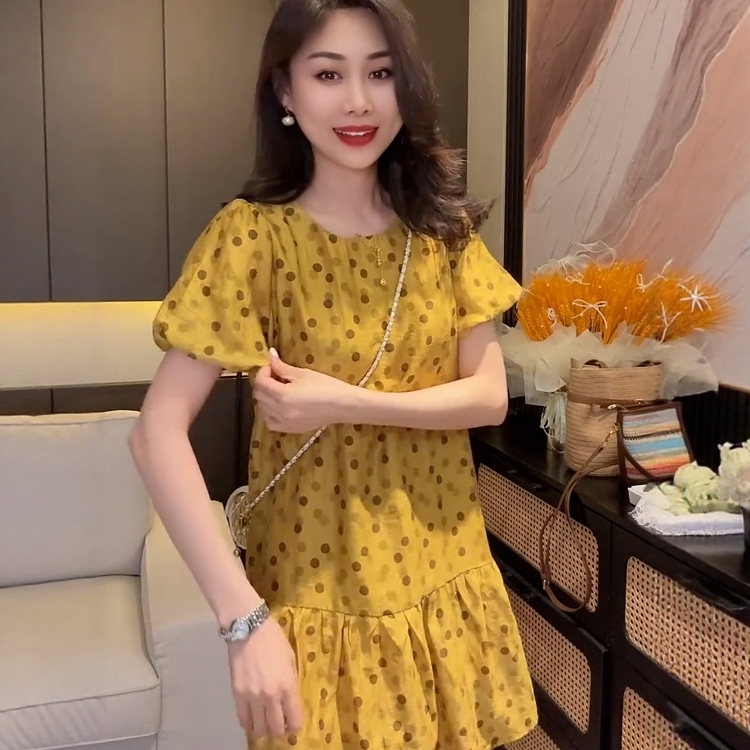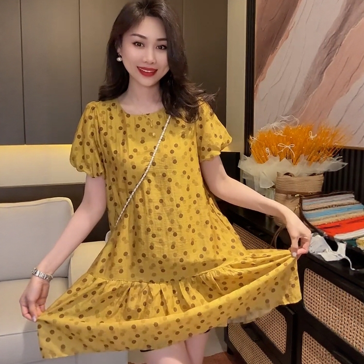 欧货法式复古晕染波点泡泡袖连衣裙女夏季2025新款宽松荷叶边裙子