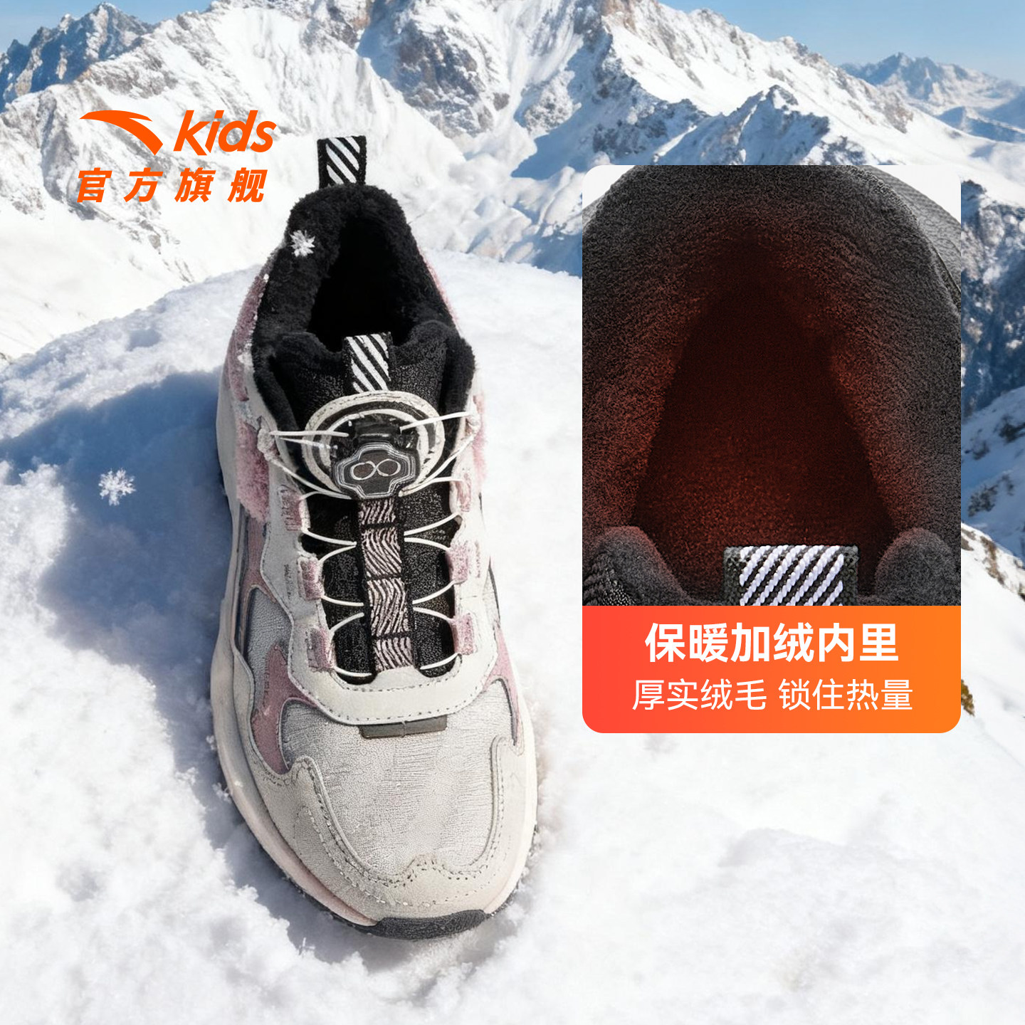 安踏儿童棉鞋女童运动鞋2025冬季新款保暖加绒中大童二棉高帮童鞋
