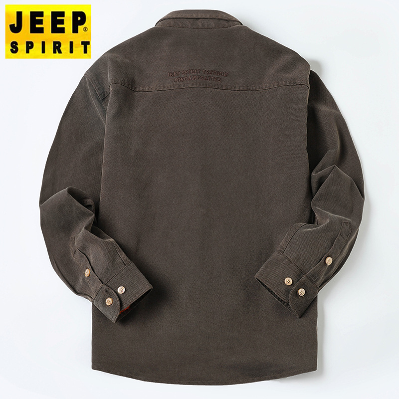 JEEP吉普男装舰店秋冬天丝衬衫宽松纯色时尚休闲长袖厚款灰色外套
