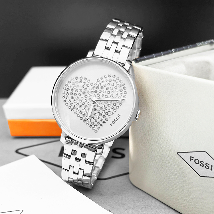 FOSSIL手表不锈钢玫瑰金时尚镶钻心形石英表防水女表ES4350