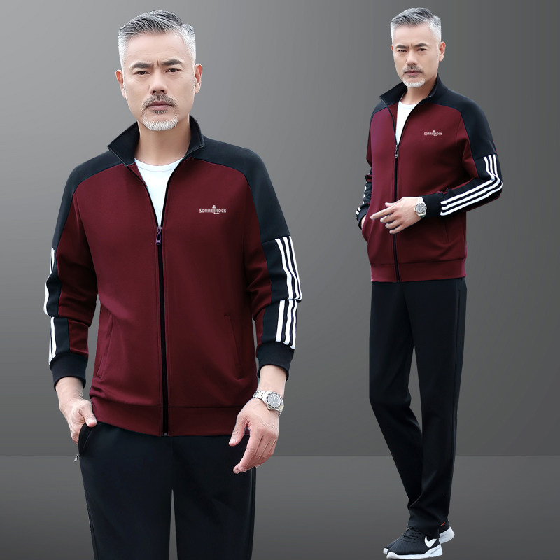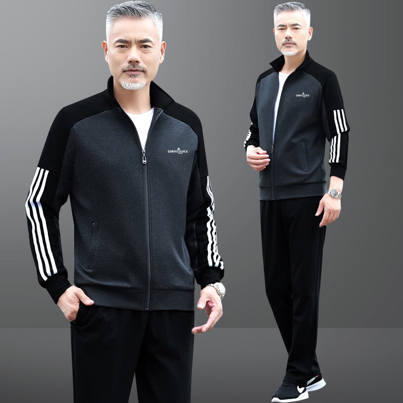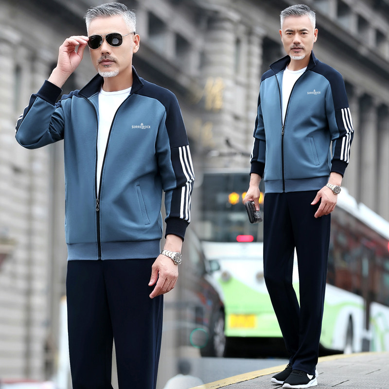 中老年男装外套秋装爸爸运动服休闲套装春秋大码中年人父亲两件套