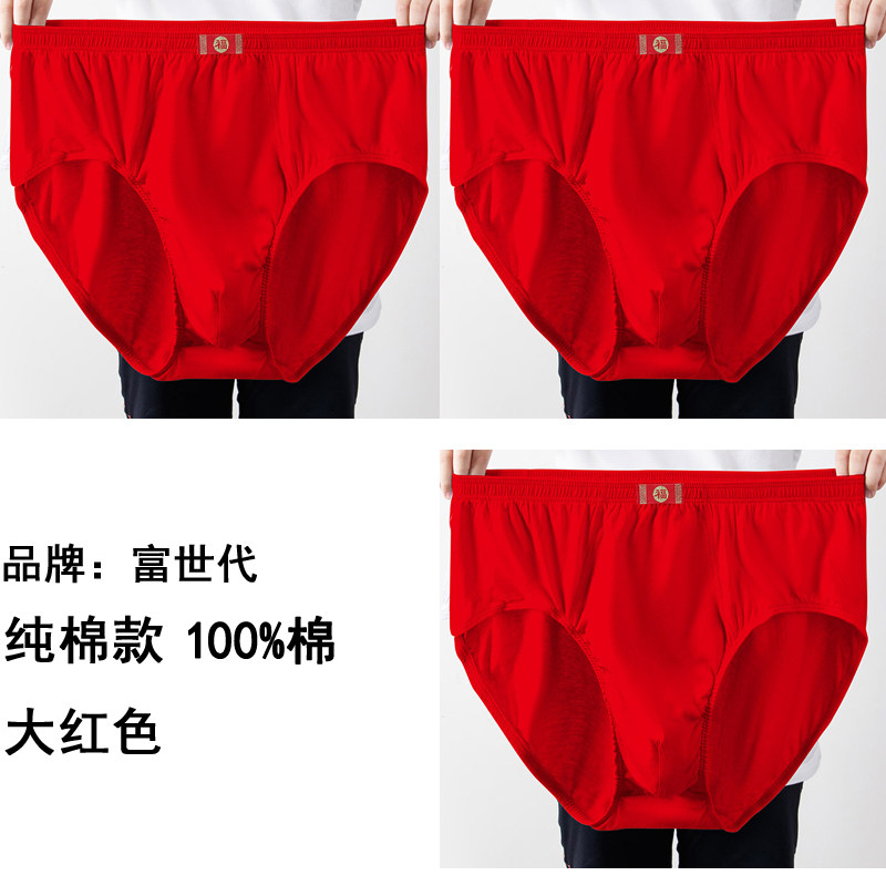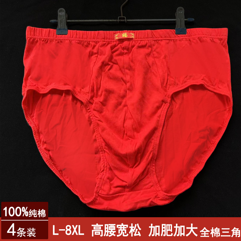 男士三角内裤全棉高腰本命年大码宽松肥佬裤衩大红色胖子100%纯棉
