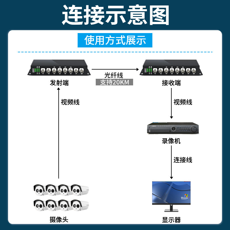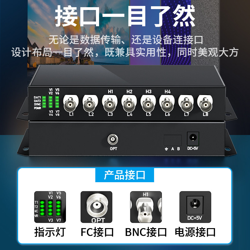 阿卡斯 4路8路16路同轴高清视频光端机大华HDCVI海康TVI雄迈AHD带485数据130万监控光端机960P兼容消防水泡